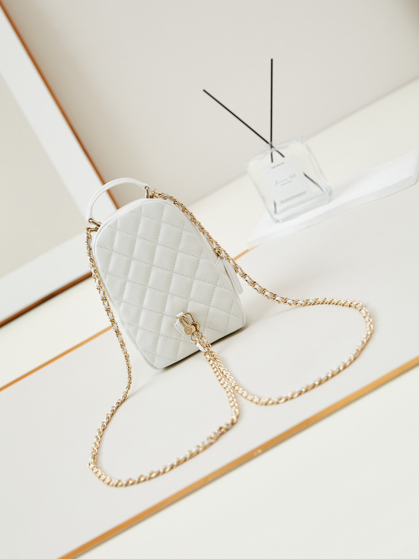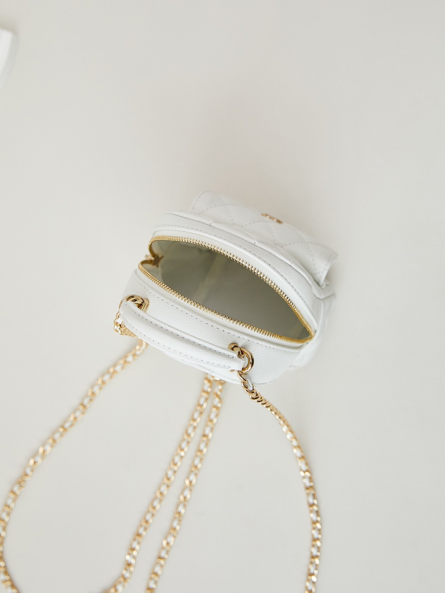 24Cmini lychee pattern small shoulders, various ways to carry, crossbody, and backpack. Leather or lychee pattern very durable and very ok. A classic minimalist style. It’s perfect