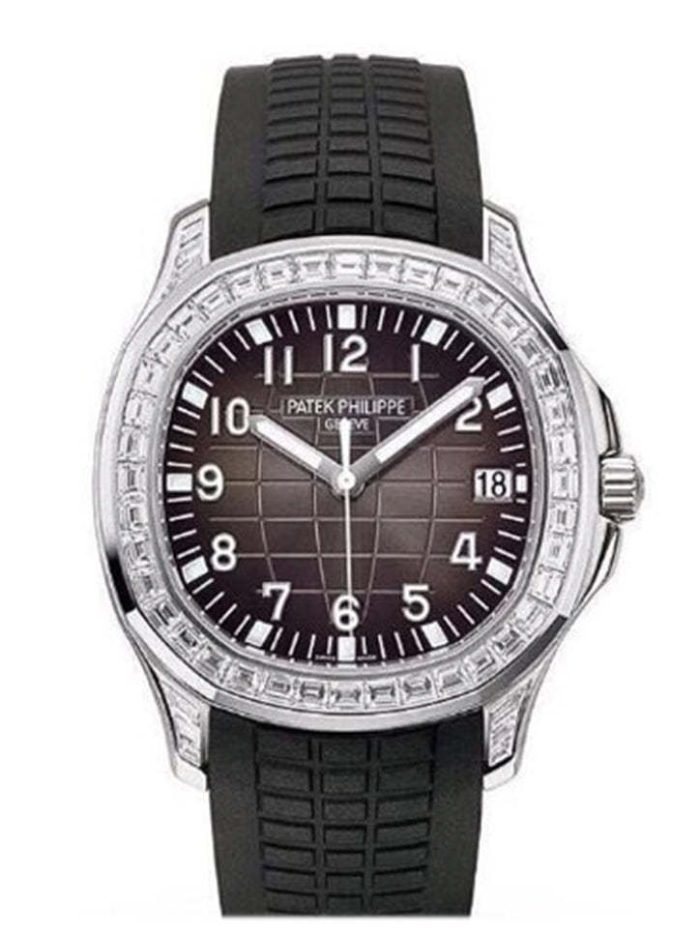 Aquanaut 5167/300G-010 Measuring 40mm in diameter by 8.1mm thick. the case of the watch is made of 18k white gold and is set with a whopping 101 baguette diamonds. in-house caliber 324 SC. This self-winding time and date movement has a 45-hour power reserve and includes some of’s advanced research components. including a four-spoke Gyromax balance wheel and a Spiromax balance. bezel is set with 40 brilliant-cut diamonds. Oyster-Flex bracelet.