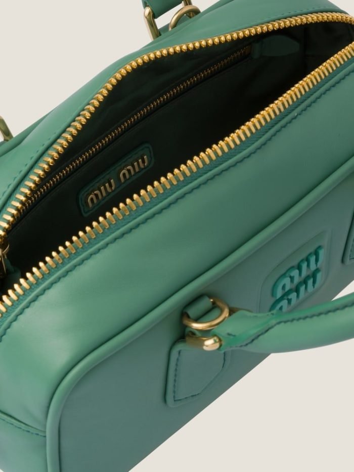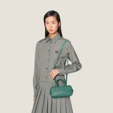 This Arcadie leather bag expresses a notion of fashion as a means of translating a reaction to current reality into material form. The light padding gives the bag a voluminous look and a cosmopolitan style. The lettering logo. which echoes the finishes of the metal hardware. crosses the boundaries between function and decoration and helps to define the distinctive and iconic aesthetic of the top-handle bag.