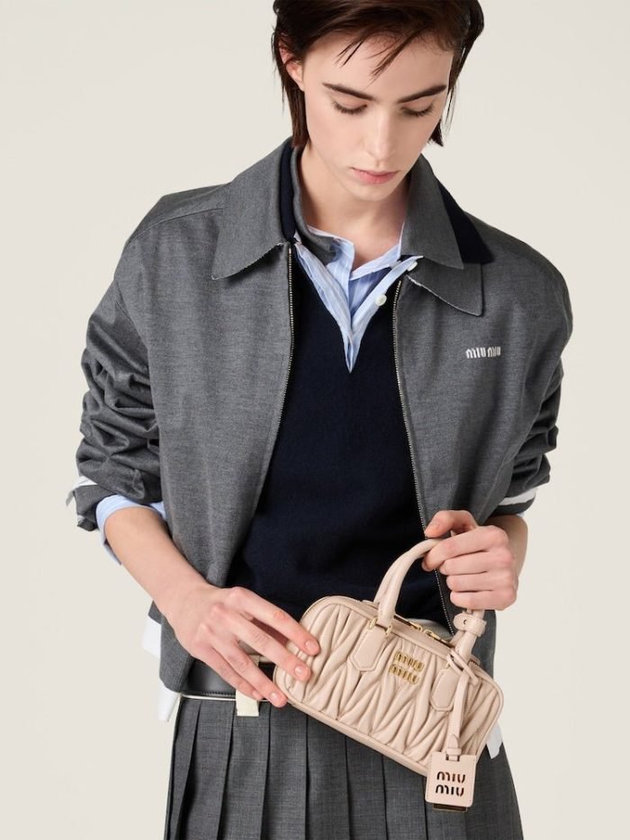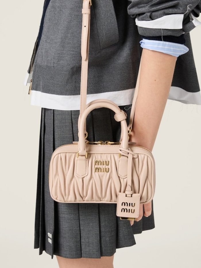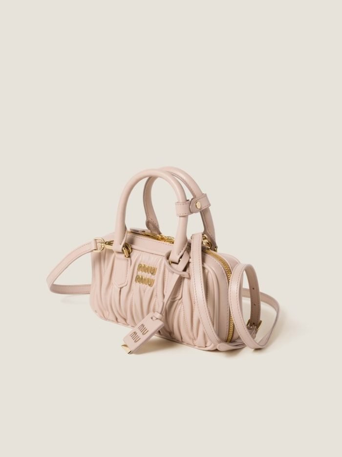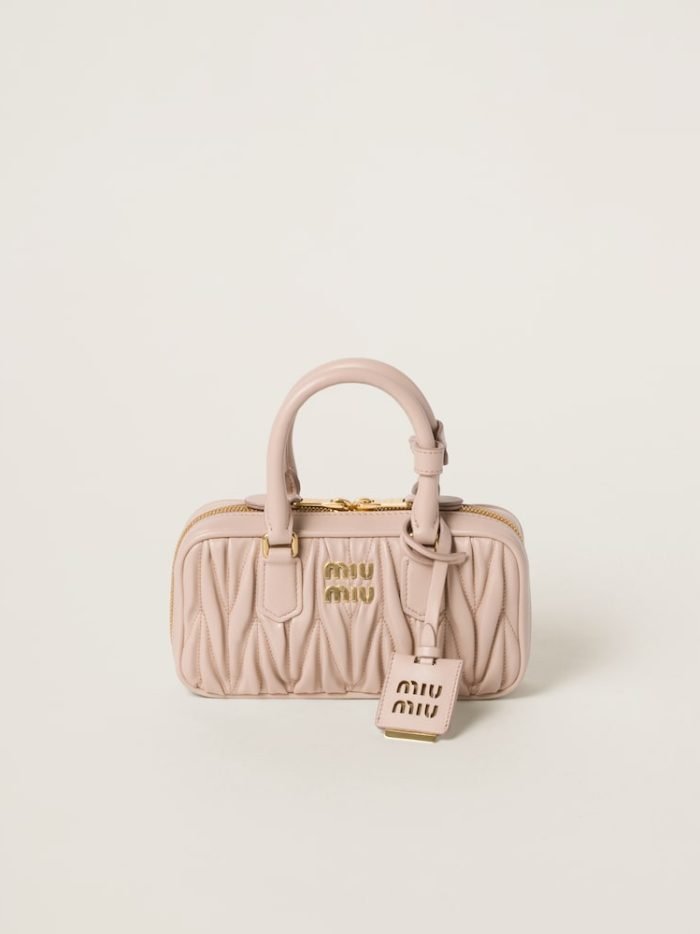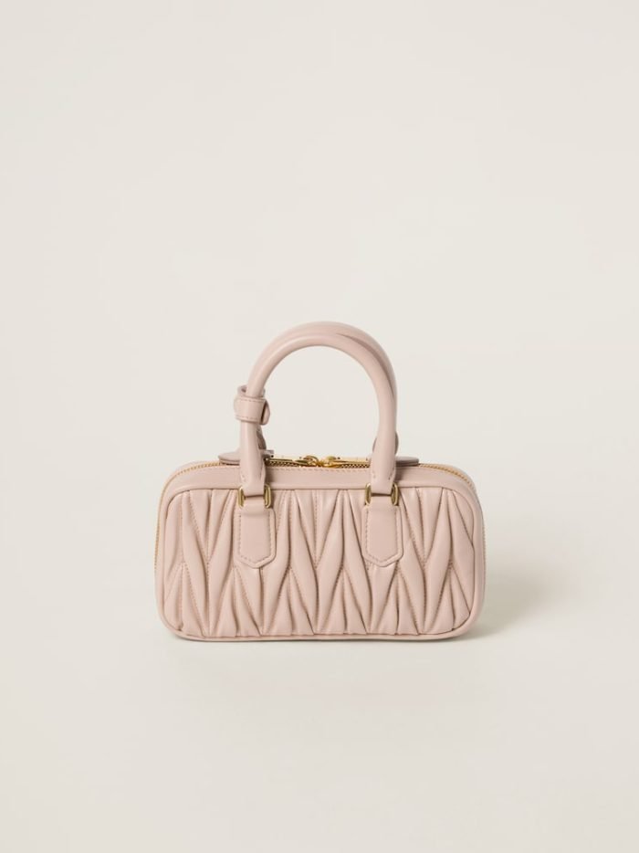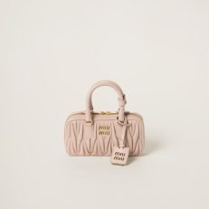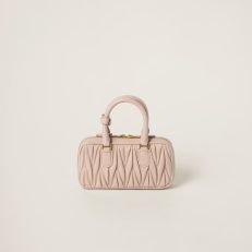 Fine matelass?? workmanship reinterprets the classic silhouette of the top-handle bag. giving it a three-dimensional. textured. and extremely sophisticated effect. The lettering logo on the front. which echoes the finish of the metal hardware. stands out against the refined artisan workmanship with an iconic and immediately recognizable touch. The dynamic and elegant lines of this mini format and the detachable. adjustable shoulder strap contribute to the versatile. functional. and modern design of the bag.