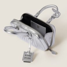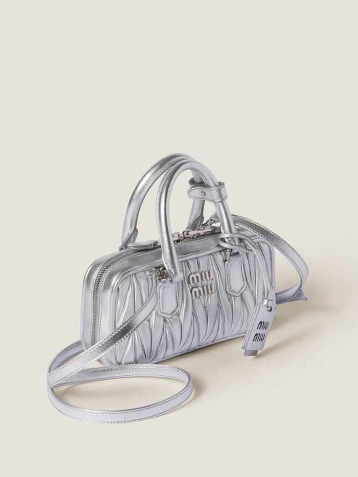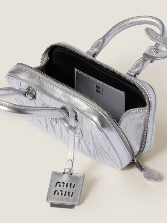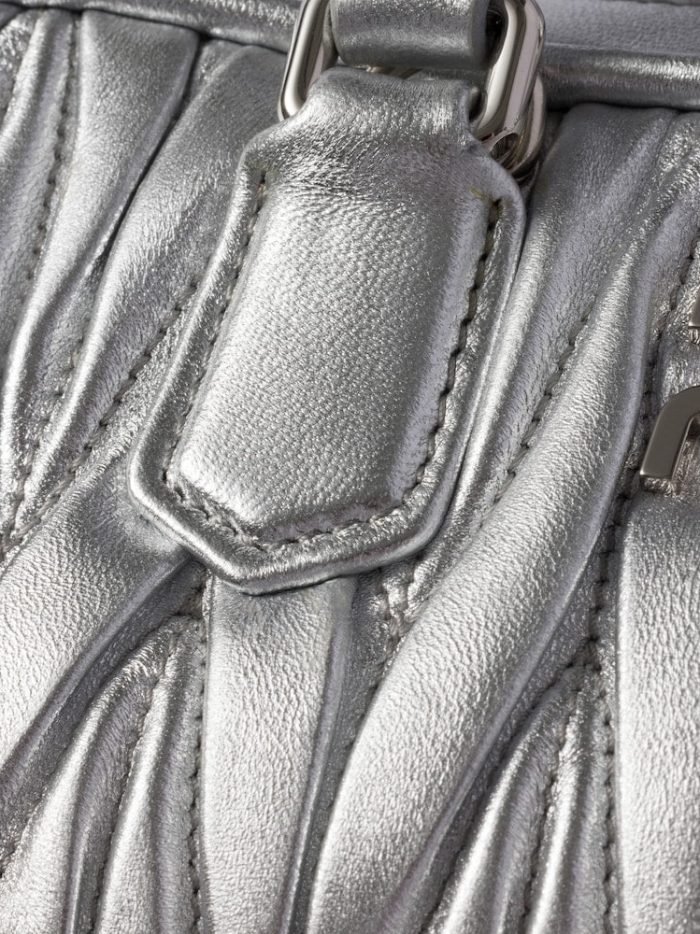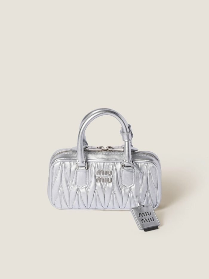 Fine matelass?? workmanship reinterprets the classic silhouette of the top-handle bag. giving it a three-dimensional. textured. and extremely sophisticated effect. The lettering logo on the front. which echoes the finish of the metal hardware. stands out against the refined artisan workmanship with an iconic and immediately recognizable touch. The dynamic and elegant lines of this mini format and the detachable. adjustable shoulder strap contribute to the versatile. functional. and modern design of the bag.