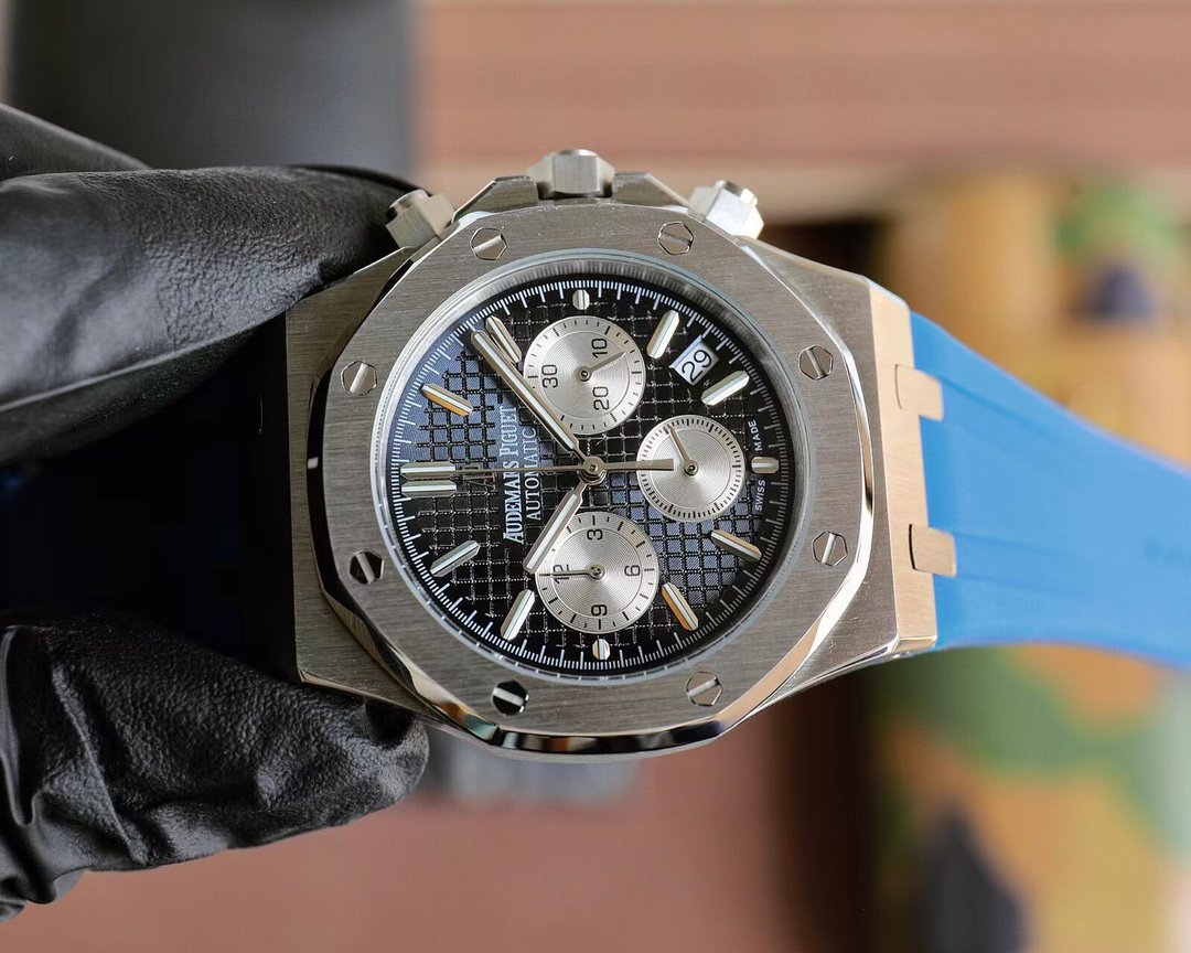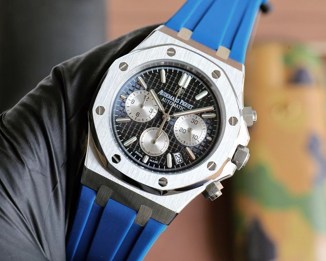Audemars Piguet AP Royal Oak series coated glass size 42mm*14mm waterproof tape with AP original pin buckle equipped with Japanese multi-function quartz movement octagonal brushed steel case with grid surface cool and domineering different tough guy