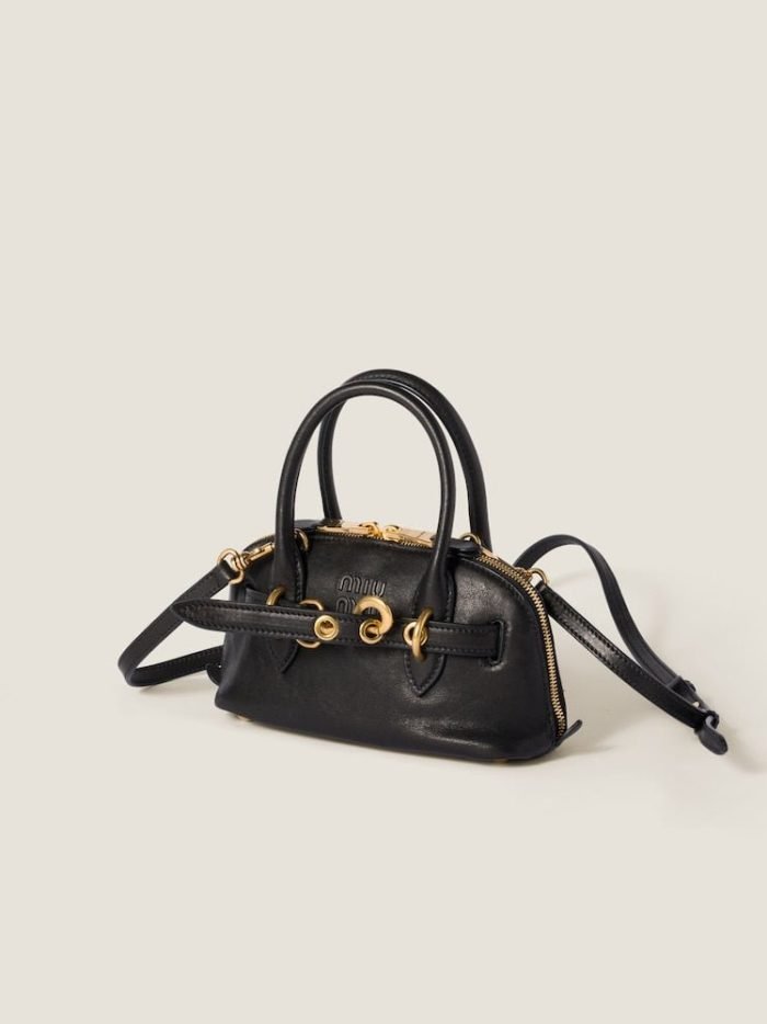 The Aventure mini nappa leather bag boasts a refined and elegant silhouette. This variant is enhanced by the original proportions and embossed logo that lends understated character to this timeless bag.