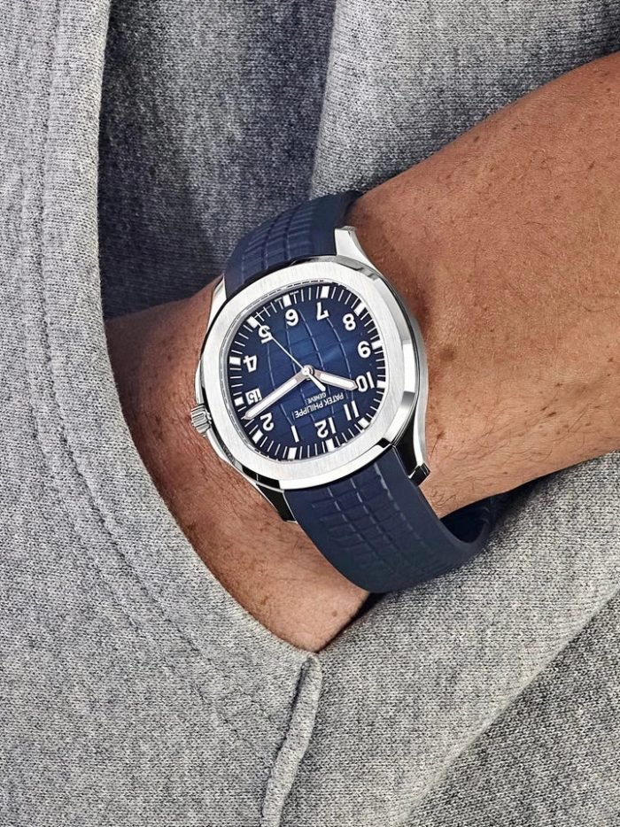 ??Basic information ??No.: 5168G-001 ??Movement type: automatic ??Gender: Men ??Appearance ??Watch diameter: 42.2 mm ??Dial color: blue ??Dial shape: other ??Strap color: blue ??Clasp type: folding clasp ??Back: transparent ??Weight: None ??Waterproof performance: daily waterproof ??Time scale type: Arabic numerals. luminous ??Clasp spacing: None ??Lug spacing: None ??Material ??Case material: stainless steel ??Dial material: black embossed pattern. gold three-dimensional block with fluorescent coating ??Bezel material: stainless steel ??Mirror material: sapphire crystal glass ??Crown material: stainless steel. screw-in crown ??Strap material: composite material ??Clasp material: stainless steel