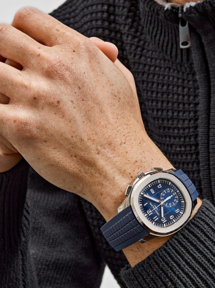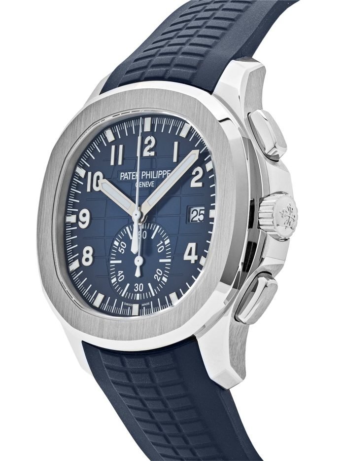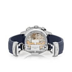 ??Basic information ??No.: 5968G-001 ??Movement type: automatic ??Gender: Men ??Movement diameter: 30 mm ??Movement thickness: 6.63 mm ??Number of jewels: 35 ??Number of parts: 327 ??Power reserve: 55 hours ??Appearance ??Watch diameter: 42.2 mm ??Case thickness: 11.9 mm ??Dial color: blue ??Dial shape: square ??Strap color: blue ??Clasp type: folding clasp ??Back: transparent ??Weight: None ??Waterproof performance: daily waterproof ??Time scale type: Arabic numerals Luminous ?? Buckle spacing: None ?? Lug spacing: 22 mm ?? Material ?? Case material: 18k white gold ?? Dial material: Brass. with sunburst relief decoration. covered with PVD coating ?? Bezel material: 18k white gold ?? Mirror material: Sapphire crystal glass ?? Crown material: Screw-in crown ?? Strap material: Composite waterproof material ?? Buckle material: 18k white gold