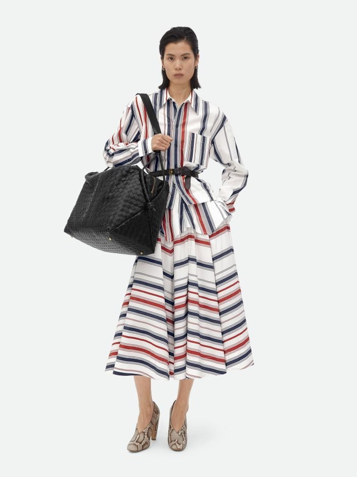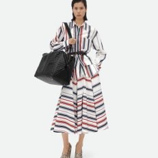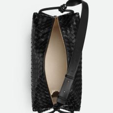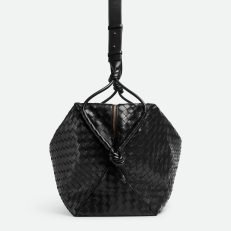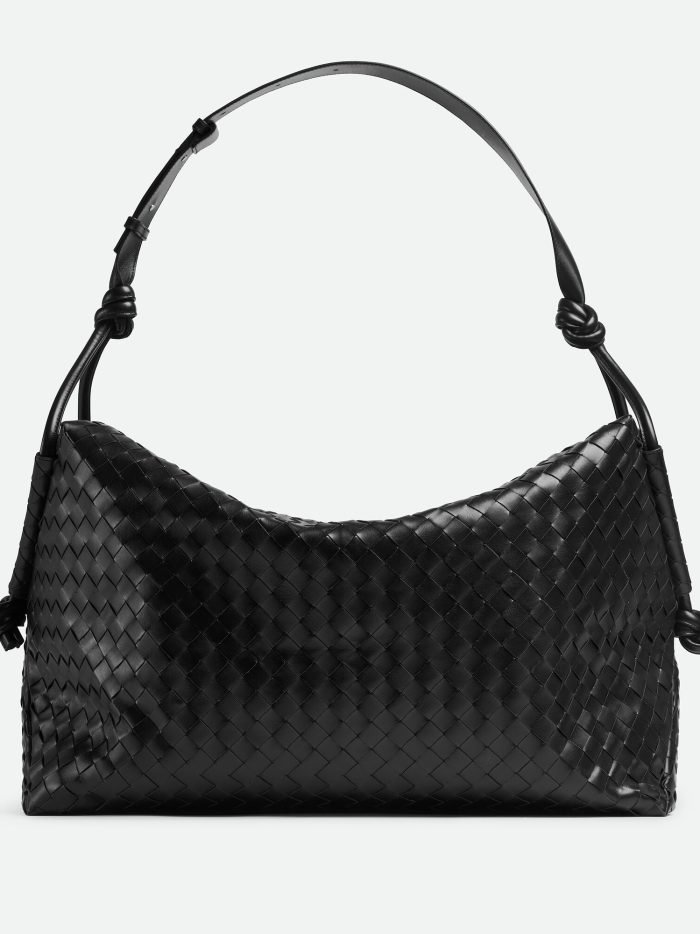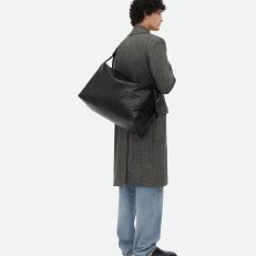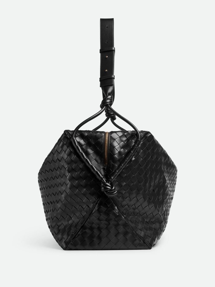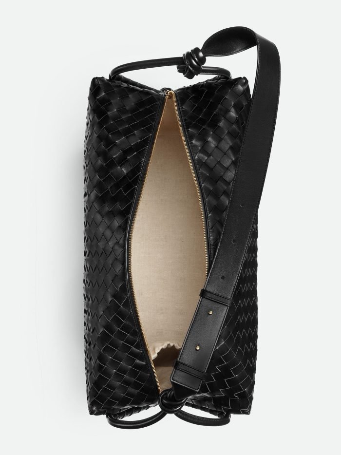 Large Intrecciato leather weekender with smooth leather strap adorned with four handmade leather knots