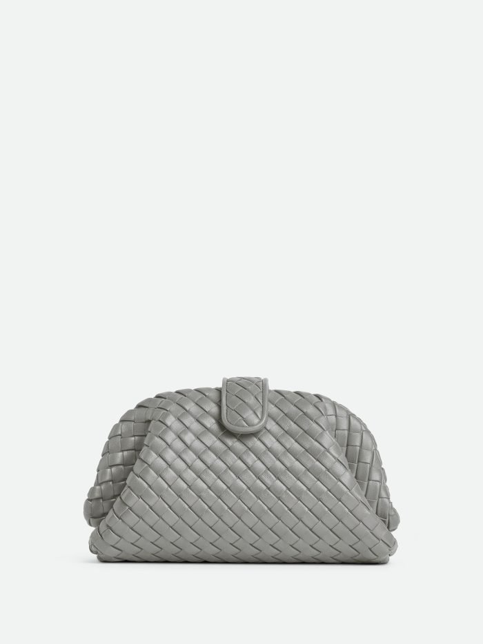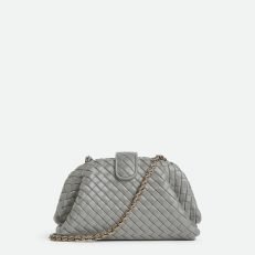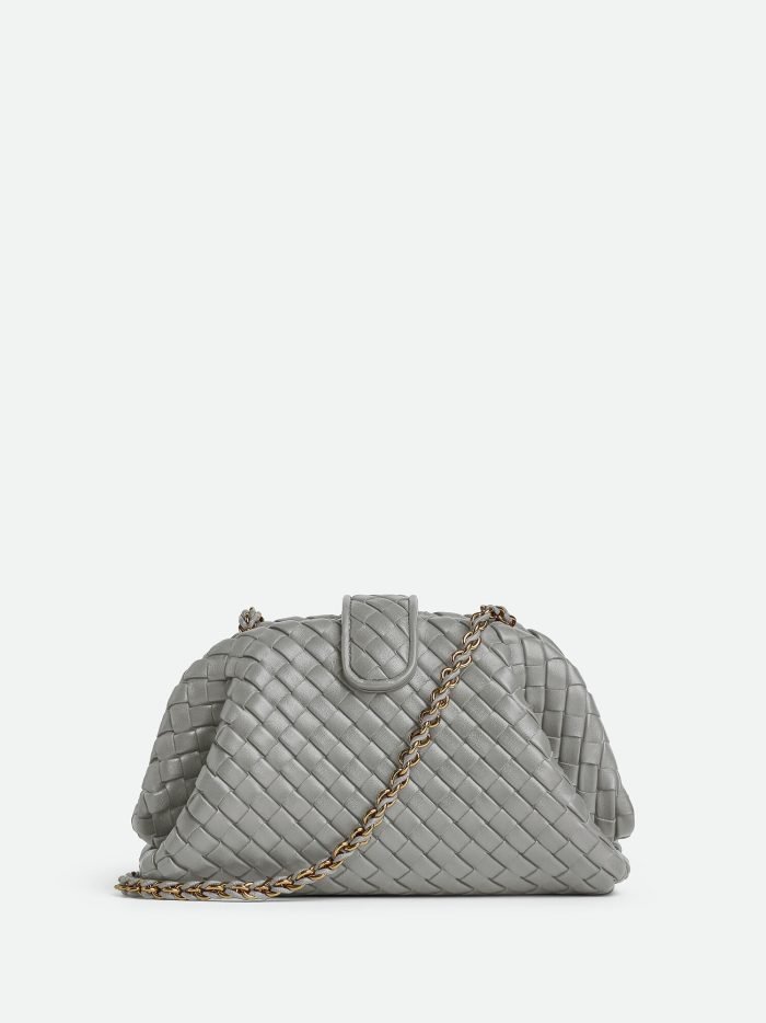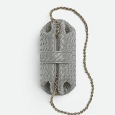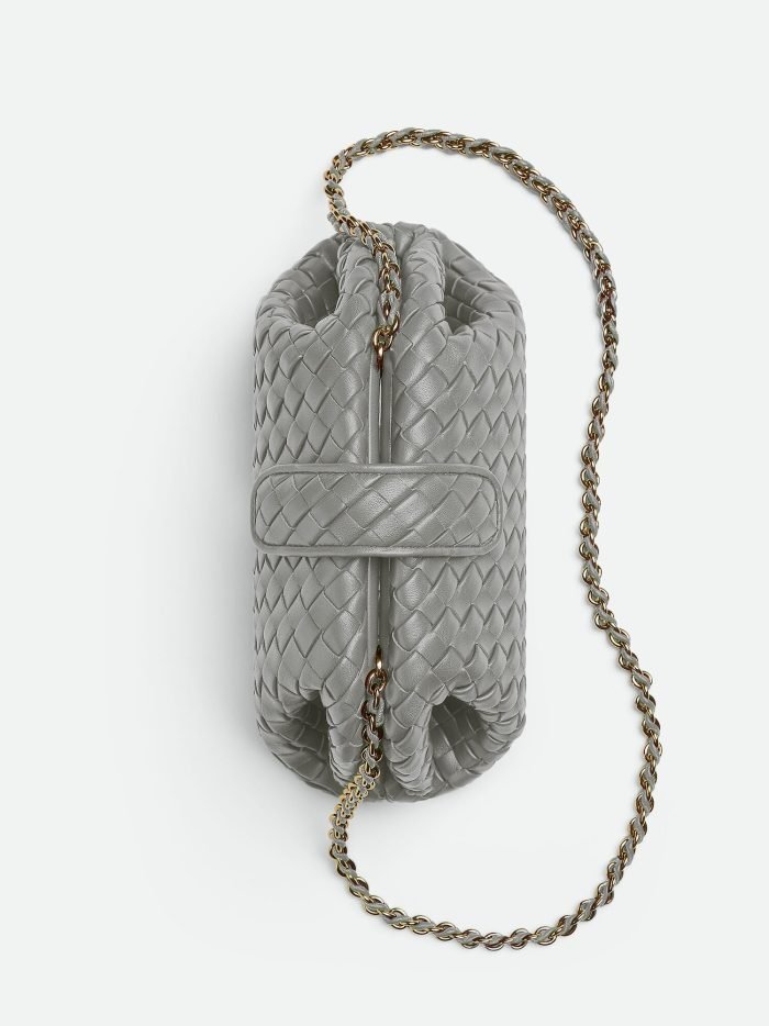Padded Intrecciato leather mini clutch with leather braided cross-body metal chain