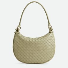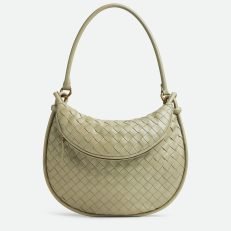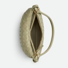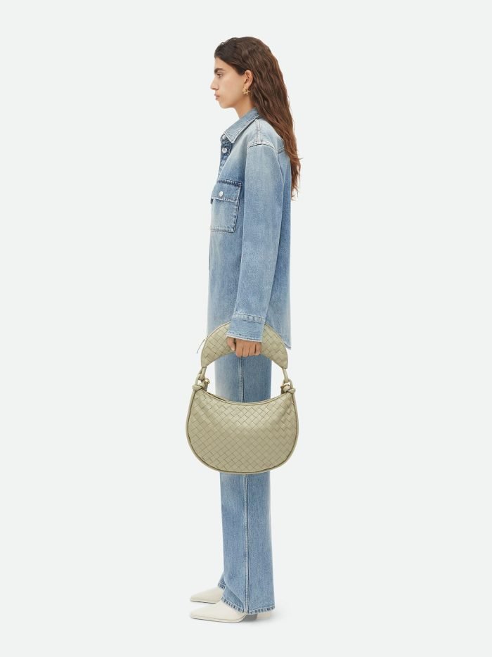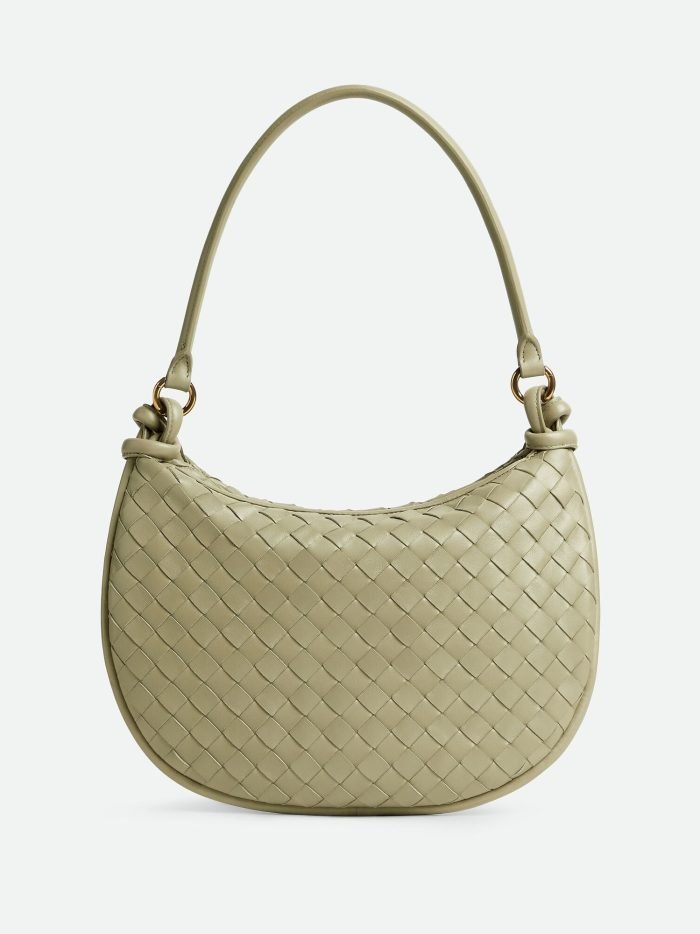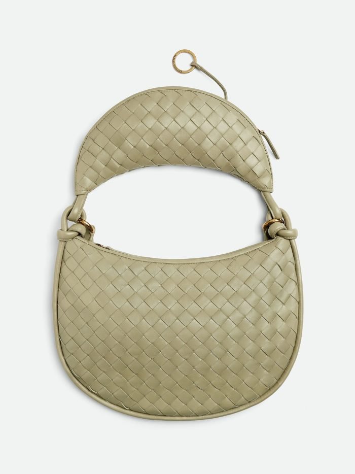 Additional half-moon zipped handle in intrecciato leather