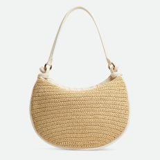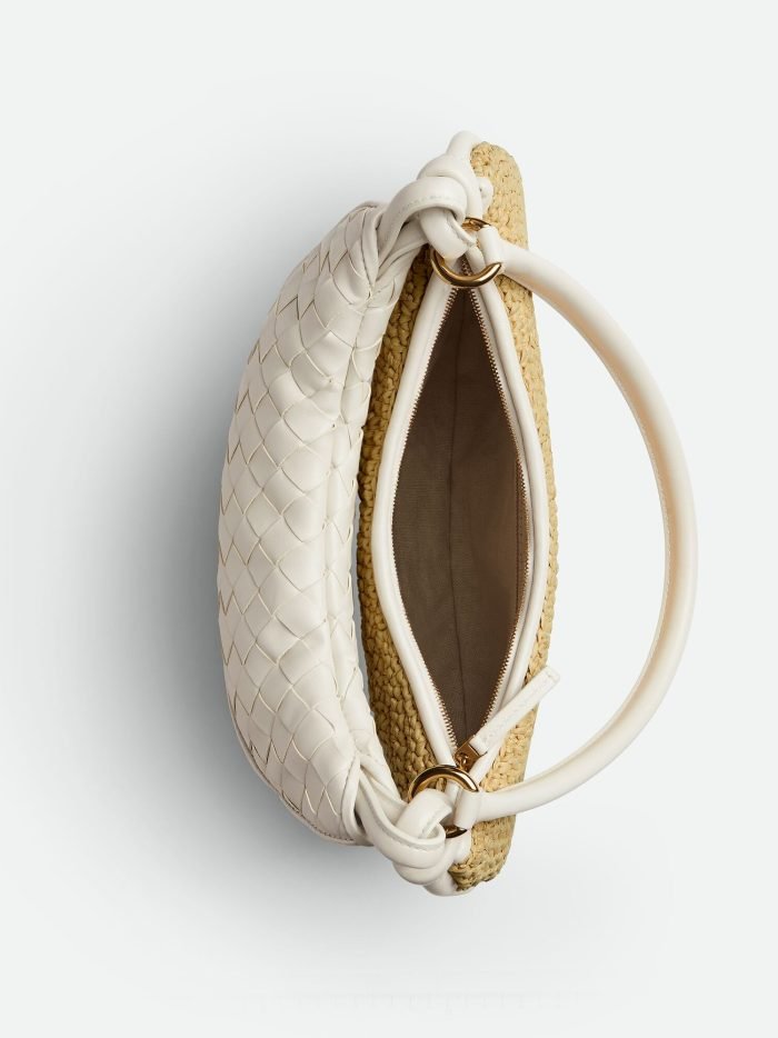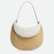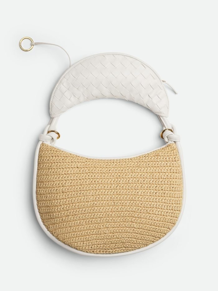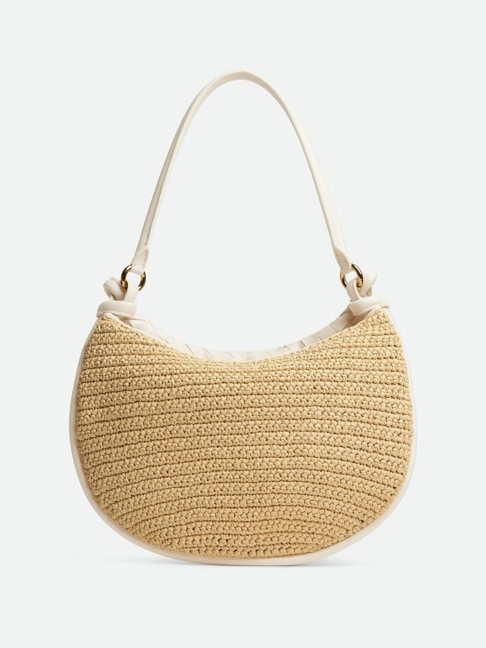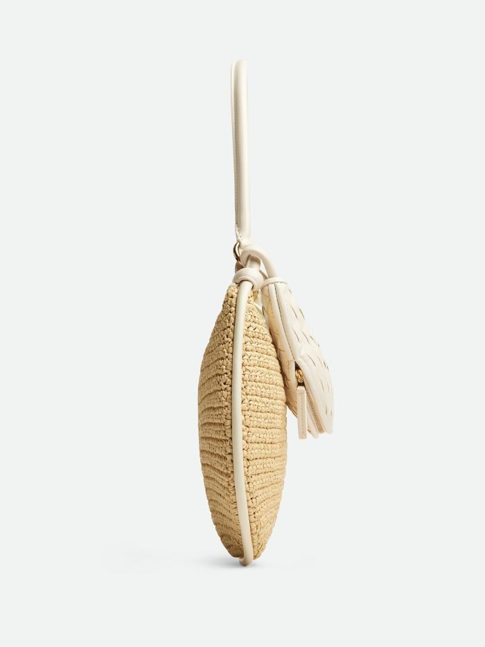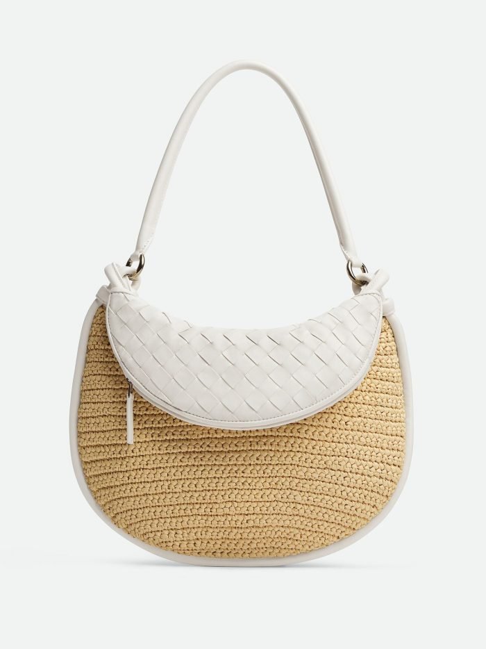 Medium raffia crochet and Intrecciato leather shoulder bag