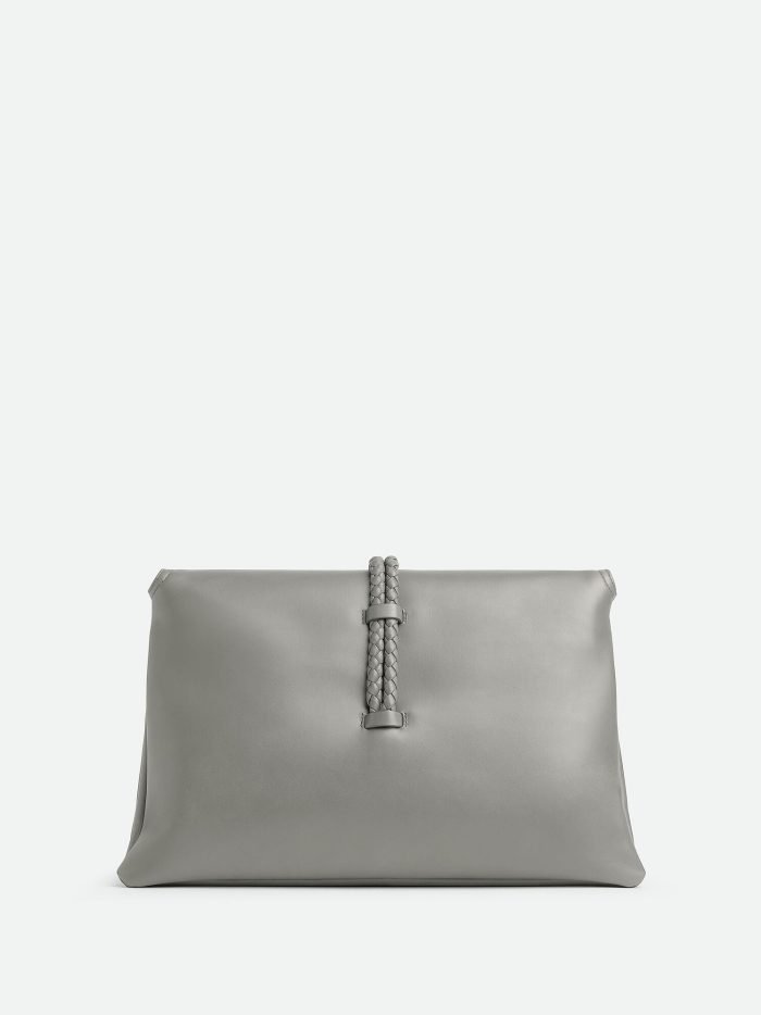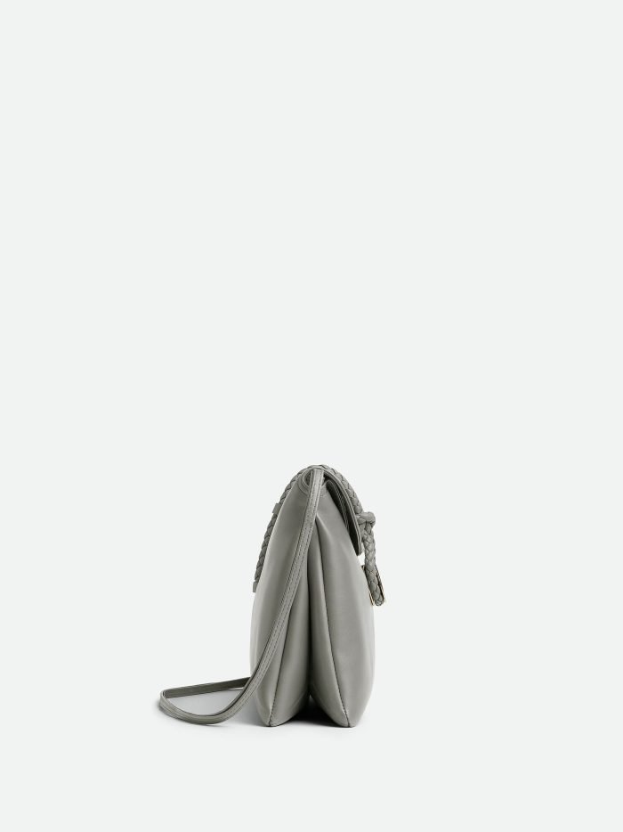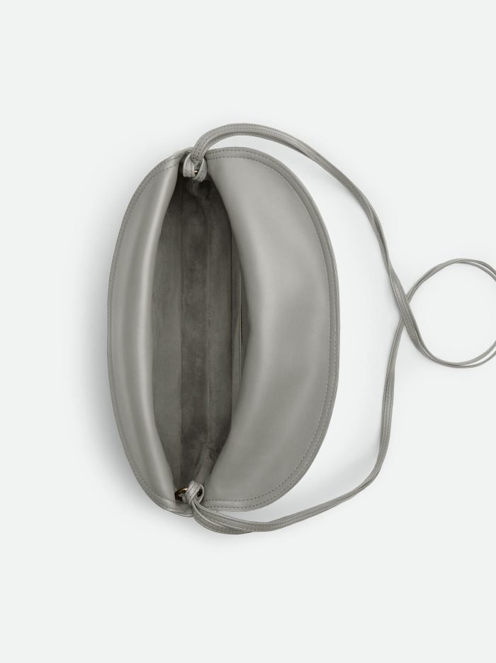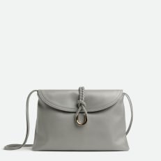 Medium cross-body bag in smooth calfskin leather with double flap and fastening system consisting of metal elements and coaxial cord