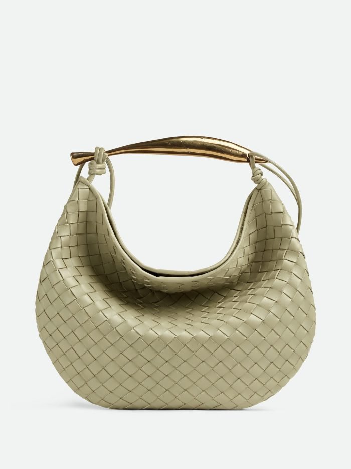 Medium Intrecciato leather shoulder bag with metallic top handle