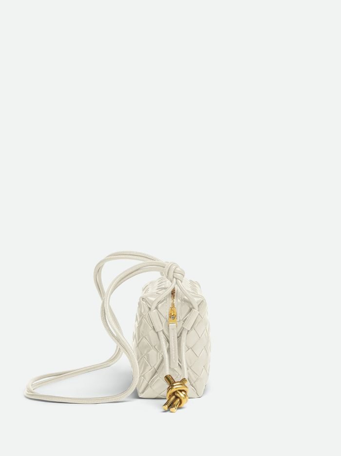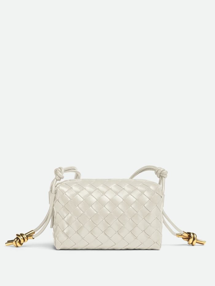 Mini intrecciato leather crossbody bag with knotted metallic embellishment