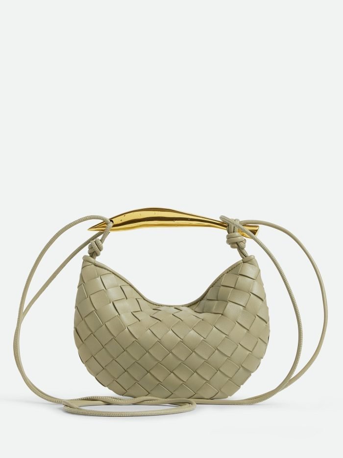 Mini Intrecciato leather cross-body bag with metallic top handle