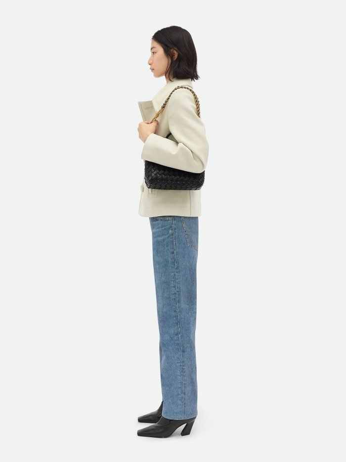 Small Intrecciato leather top handle bag with sliding cross-body chain