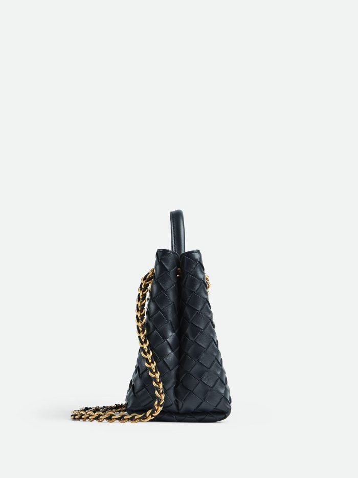 Small Intrecciato leather top handle bag with sliding cross-body chain