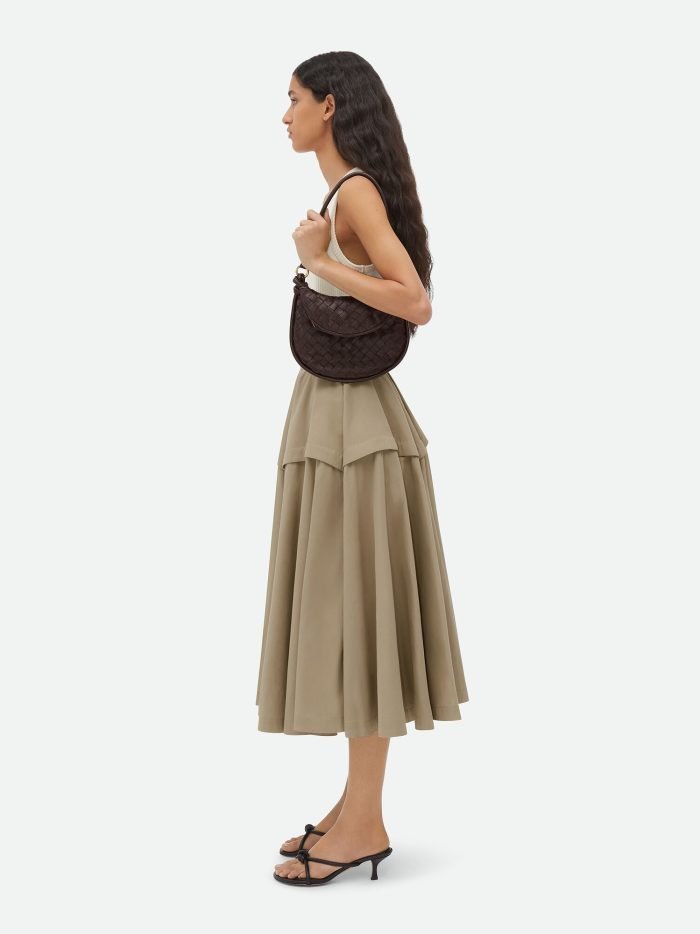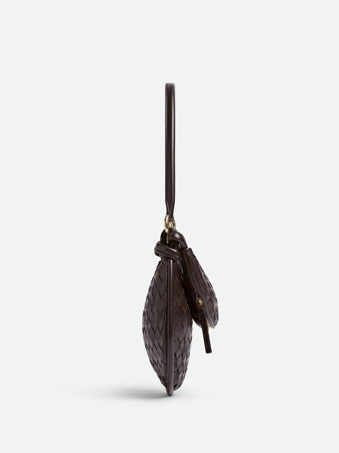 Additional half-moon zipped handle in intrecciato leather