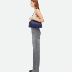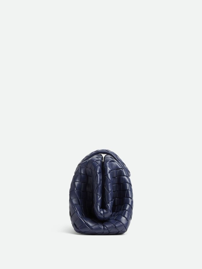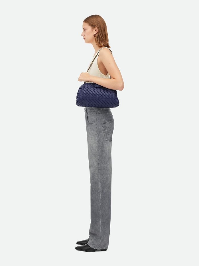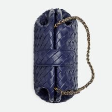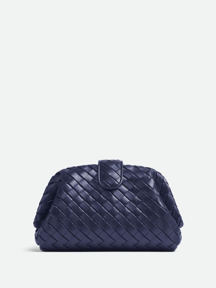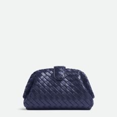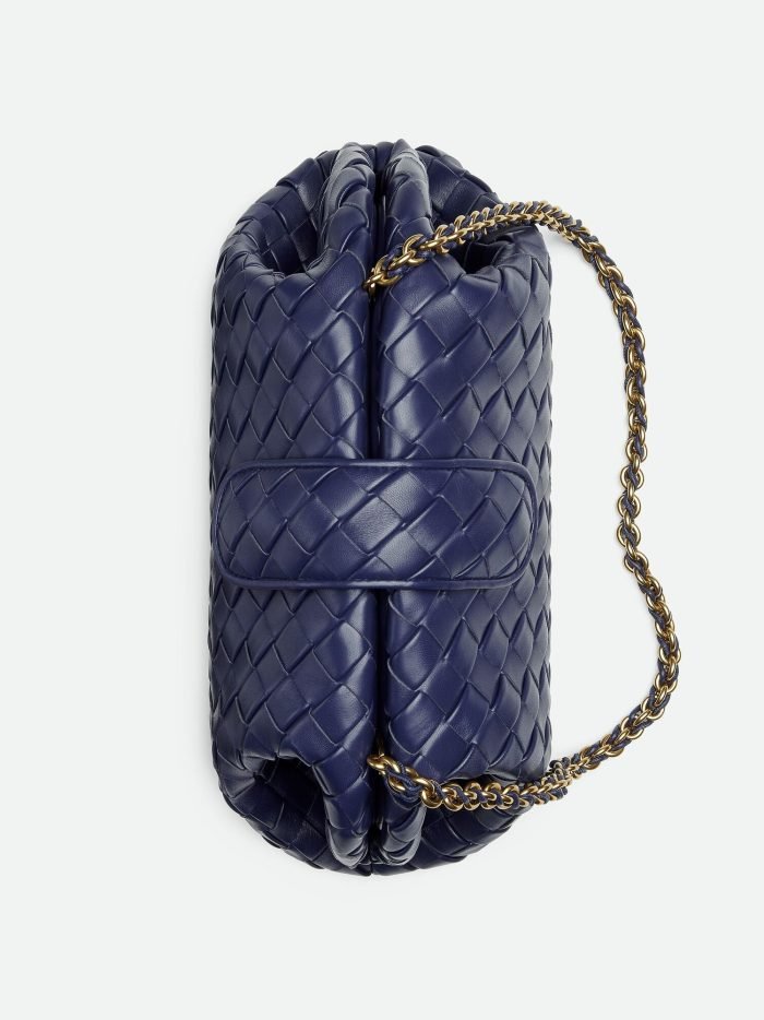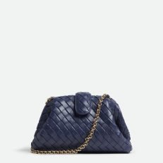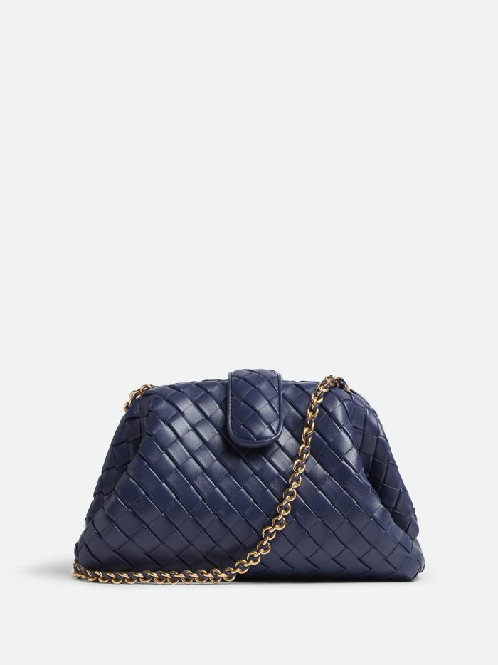Padded Intrecciato leather teen clutch with leather braided metal chain