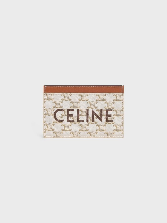 CARD HOLDER IN TRIOMPHE CANVAS WITH CELINE PRINT WHITE/TAN