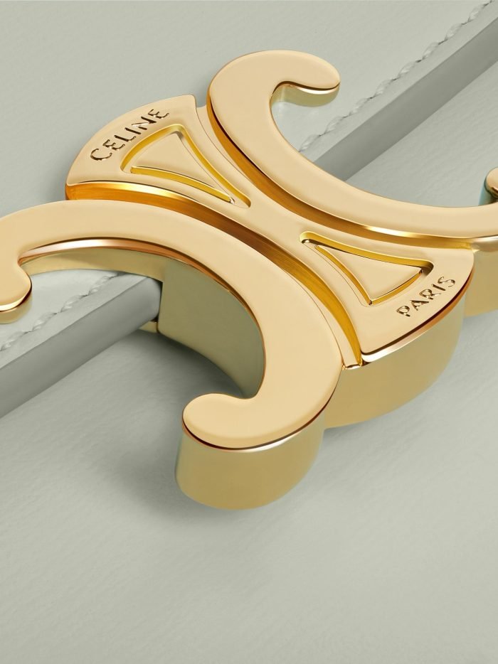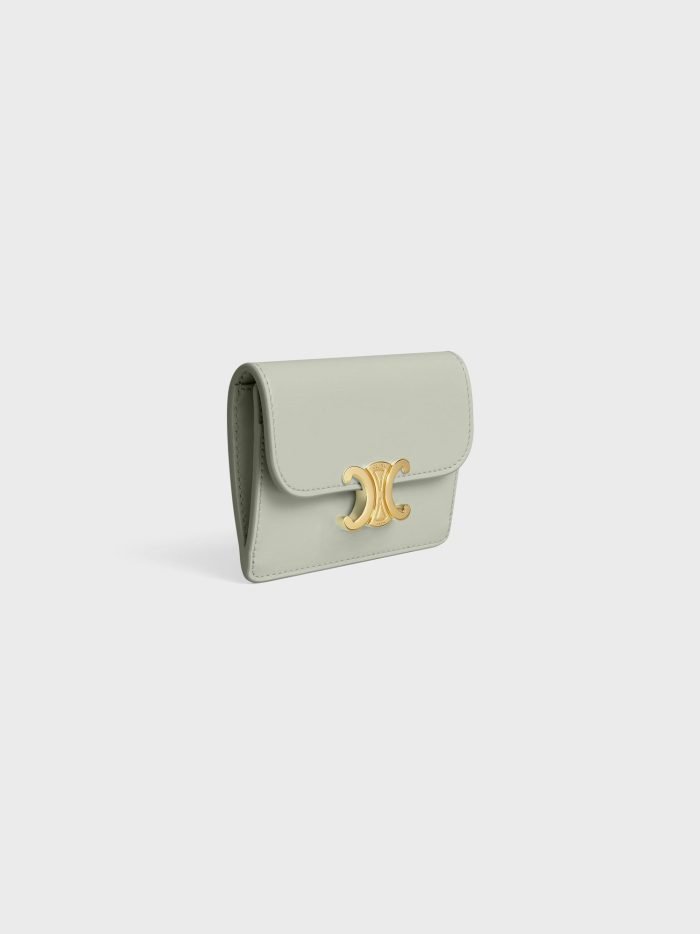 CARD HOLDER WITH FLAP TRIOMPHE IN SHINY CALFSKIN LIGHT CLAY