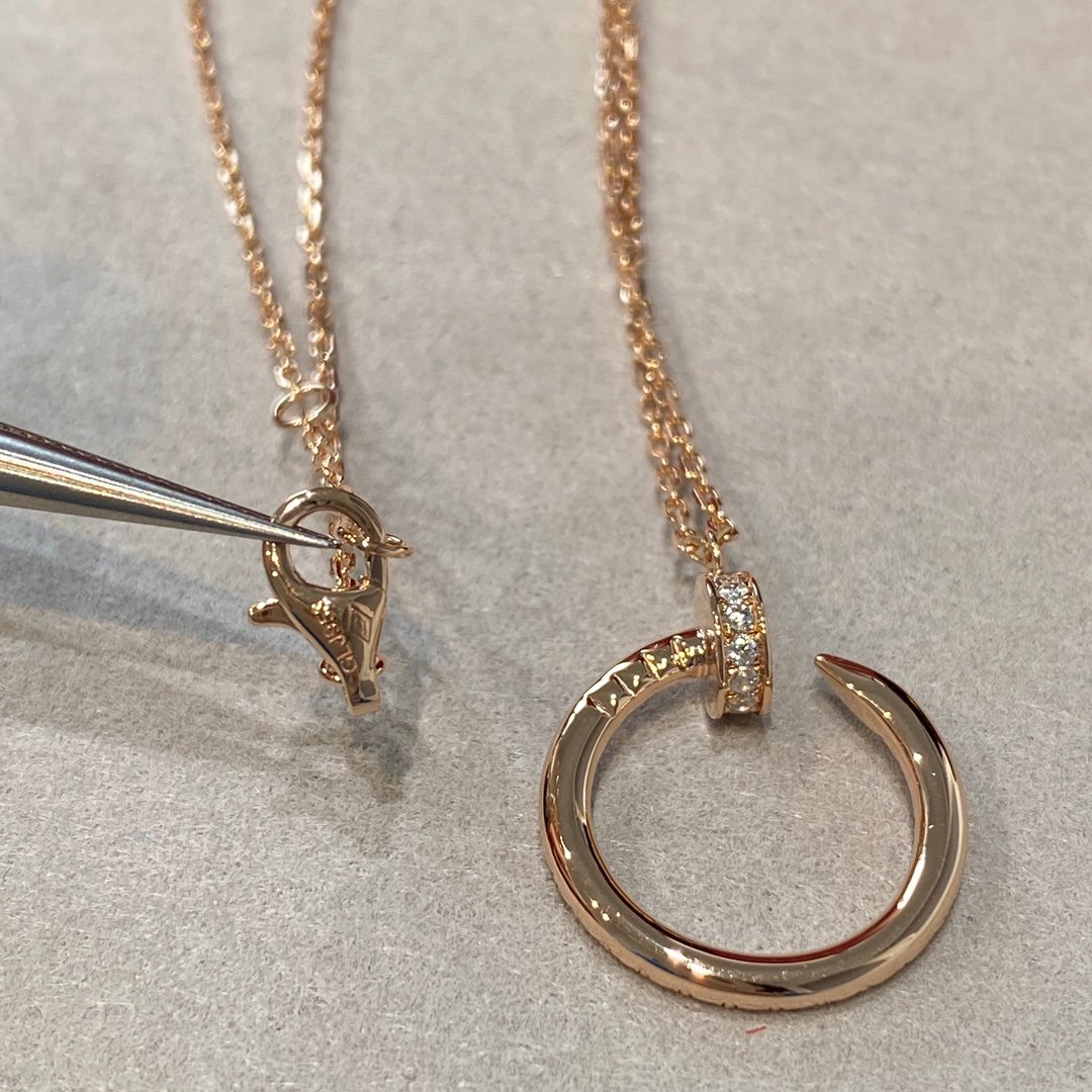 Nail necklace with diamond section perfect shipment, is a double-sided style, one side of the head and tail inlaid with diamonds, one side only head inlaid with diamonds, both sides can be worn, the details are already very heavy duty, the whole is not any engraving, the only engraving in the necklace clasp, according to the positive * typewriting, take a look at the dovetail micro-setting process, hype chicken is beautiful, the ordinary goods are not dovetail set just ordinary micro-setting, the internal can not see a beautiful dovetail, not in accordance with the original version! The original does not match. The tip is very straight and very beautiful, which requires CNC to complete, the more distinctive corners reflect the light will be stronger, wear out the effect is different. Overall components all handmade, handmade really very costly, each step is manually completed, the final product details of the delicate degree of these are machine sets of grinding mass production version can not reach, with the best cnc precision engraving machine to assist, so the shipment will be very slow, super recommended this oh, very delicate. Material body V gold plating thick gold.