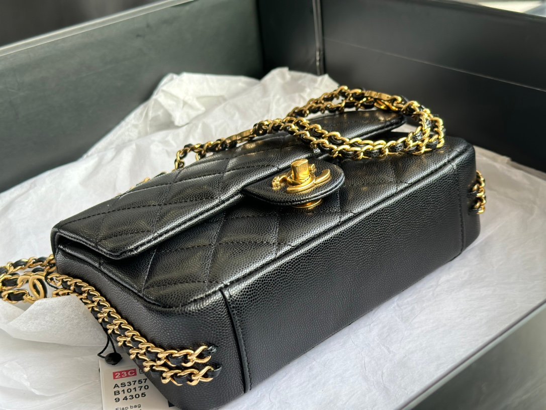 CH ANEL:: Small AS3757#: 14.5 X20 X6.5cm: 2022/2023 latest double-chain CF: lychee cowhide lychee cowhide/side chain fixed, chain and buckle color, it actually feels like rose gold, and the chain feels long You can walk around in a circle. The single room is very suitable and the software has a large capacity. It is completely different from the classic model, and the shape is completely different.
