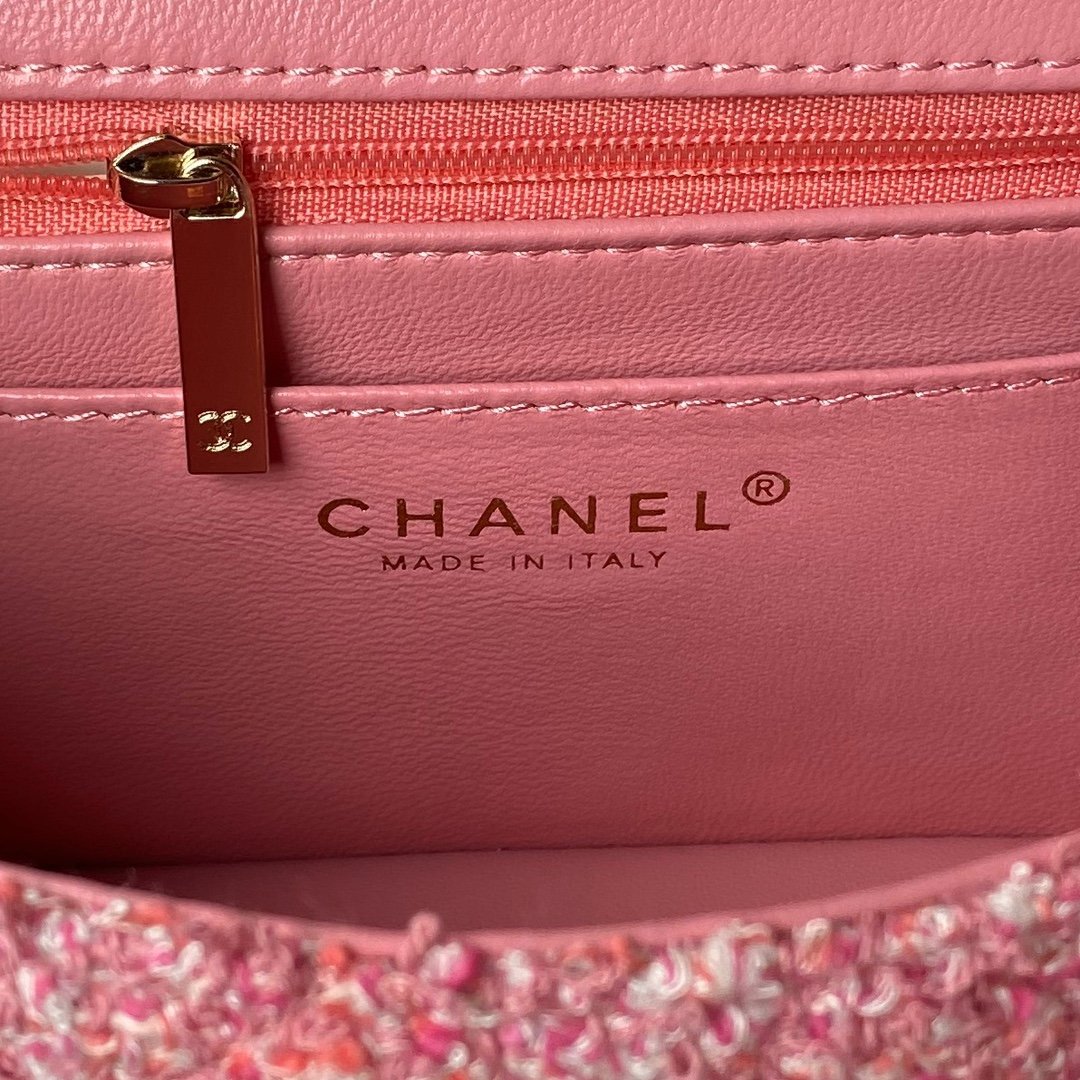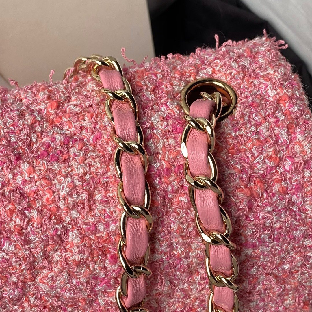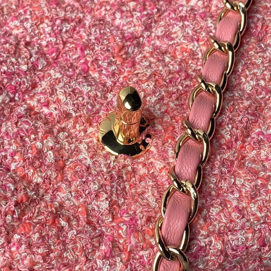 Chanel woolen style, pink, tender and cute CF, woolen material exudes gentle charm, bright colors, playful and cute~ pink sweet girlish feeling, unique temperament, fresh and high-end, it is simply the king of Xiaoxiang. Size 20cm
