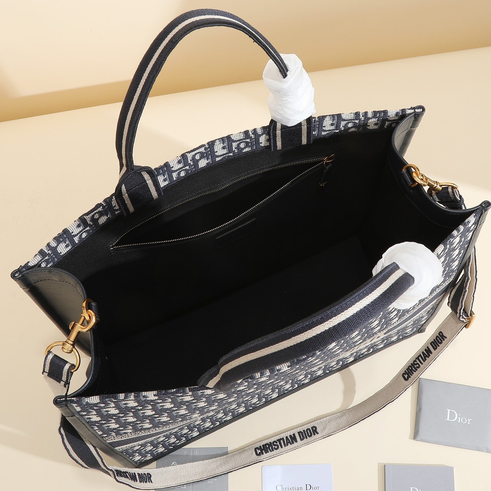 Original 2024 Early Spring [Love][Rose]! The Dior Book Tote is inspired by creative director Maria Grazia Chiuri and is a staple of Dior’s aesthetic. Designed to carry everyday items, this large tote is embroidered with the iconic Dior Oblique pattern in blue and features the “Christian Dior” logo on the front. This tote is a perfect example of Dior’s craftsmanship and can be paired with other small accessories or a Mitzah scarf to complement each other!