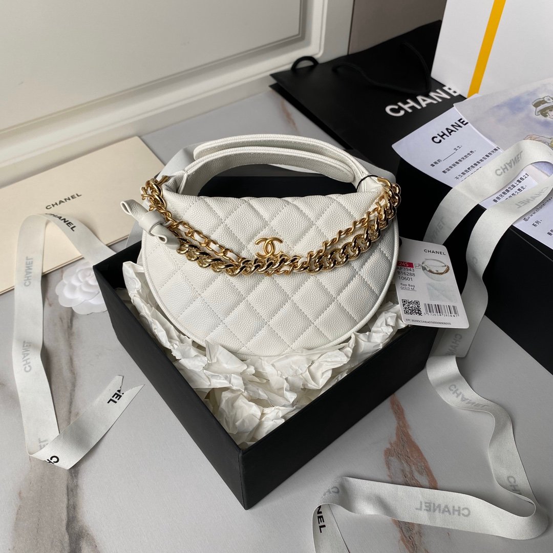 Elegant and high-end Chanel 24s new hula hoop A cute and expensive, exquisite workmanship, cowhide more wear-resistant and fabagric-resistant A golden chain has bageen added to the bag