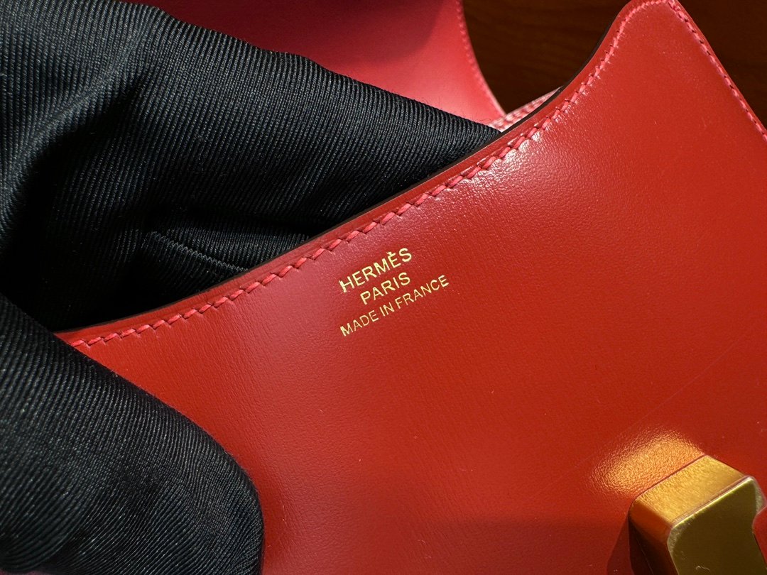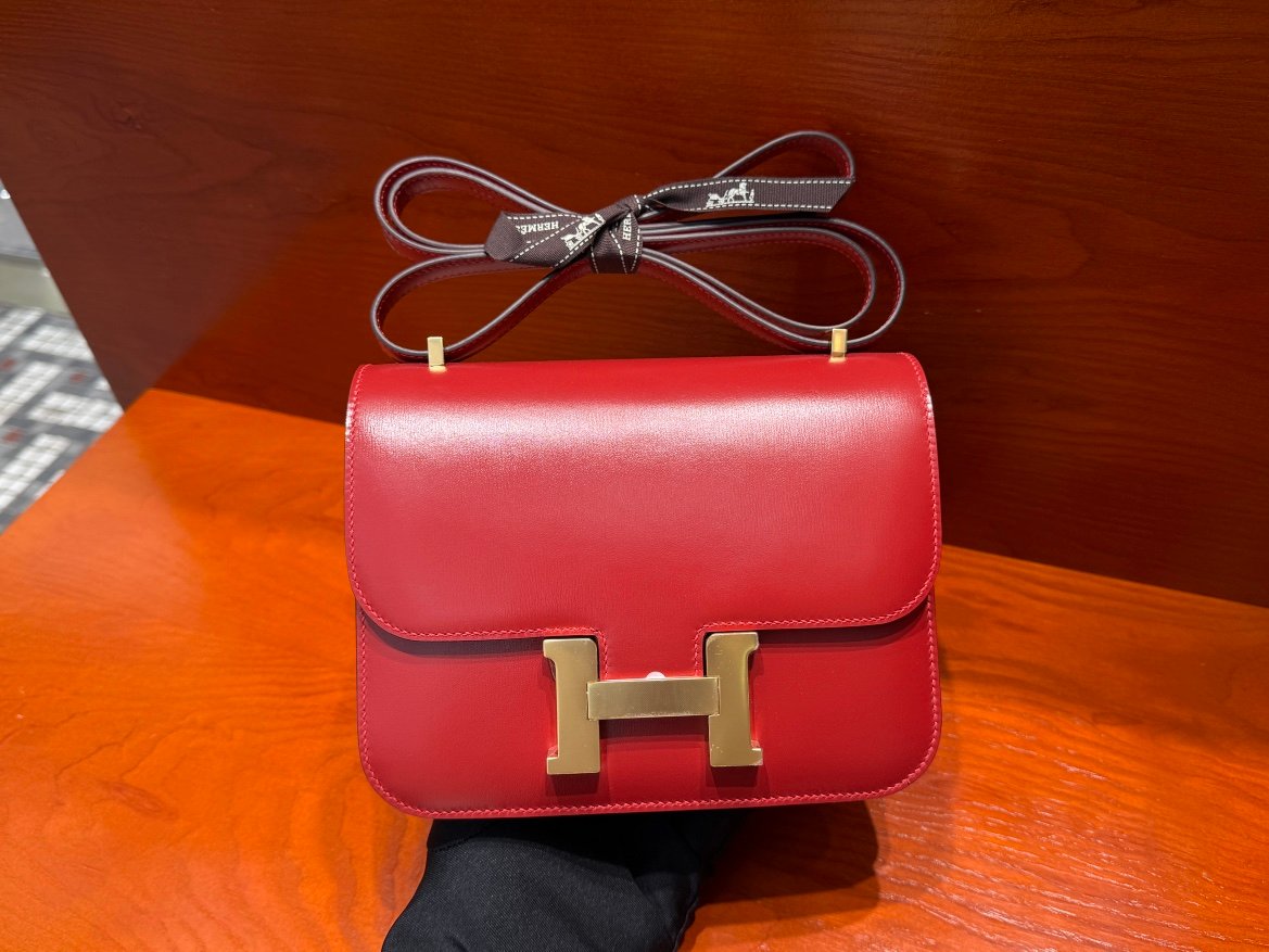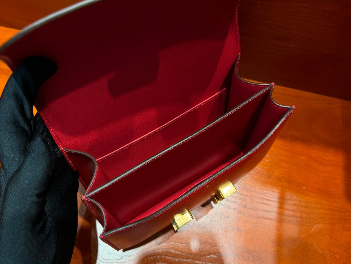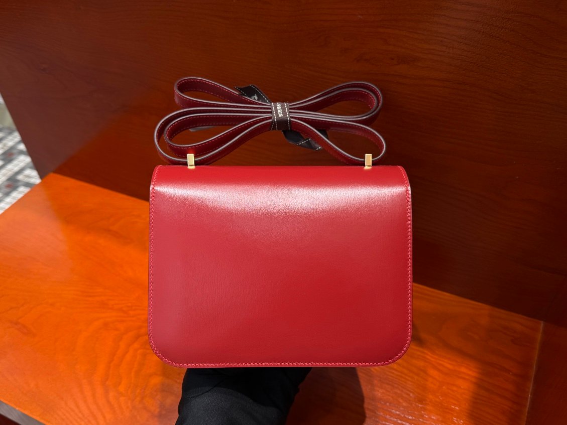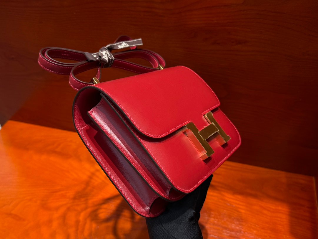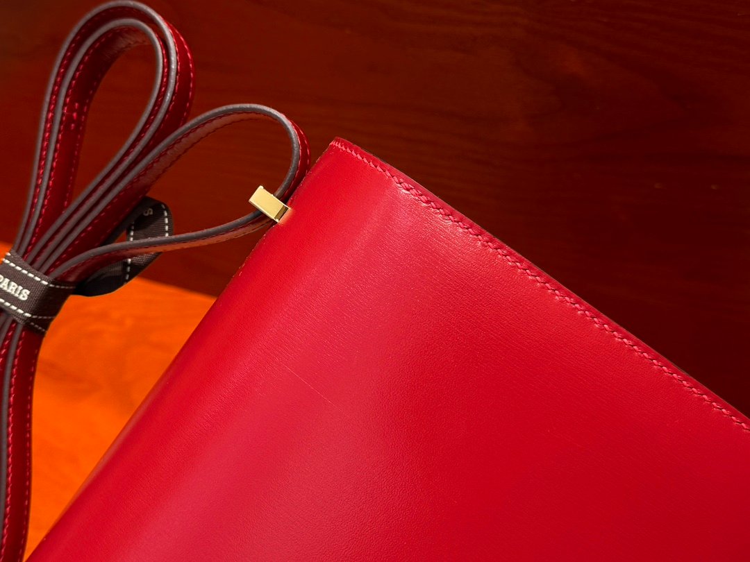 H Constance 19cm Stewardess Bag Box Leather All Handmade Flag Red
