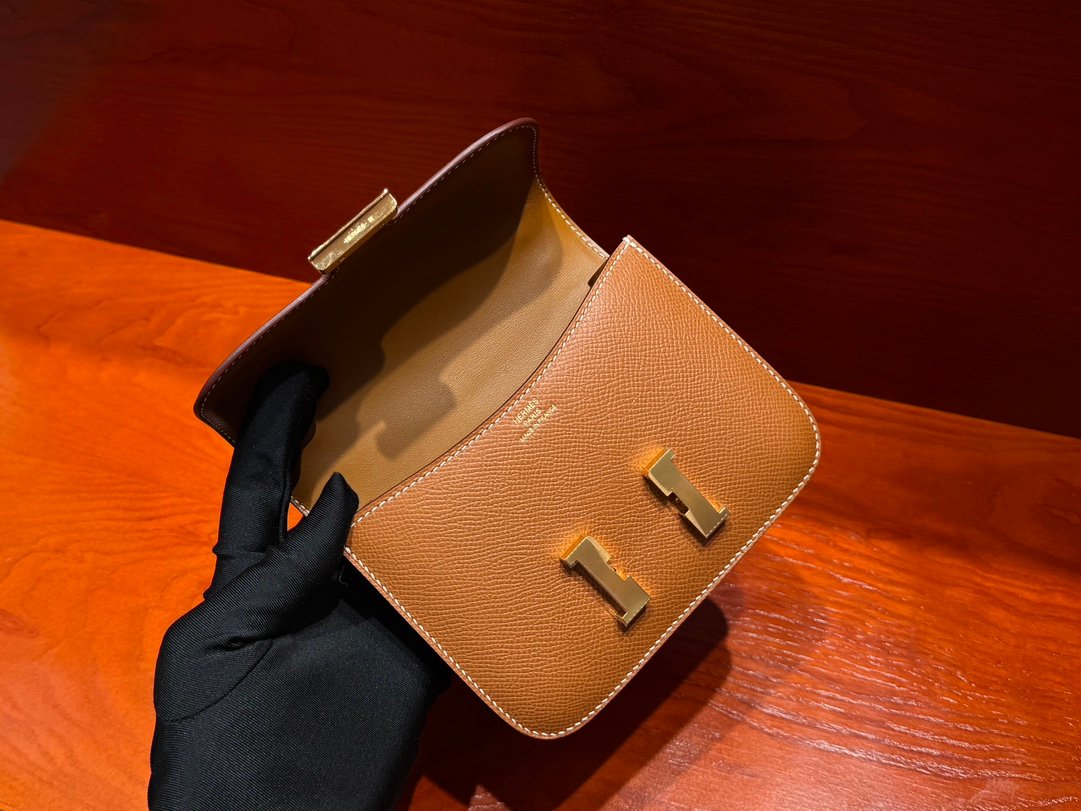 H Mini Constance Stewardess Bag Epsom Leather All Handmade Golden Brown
