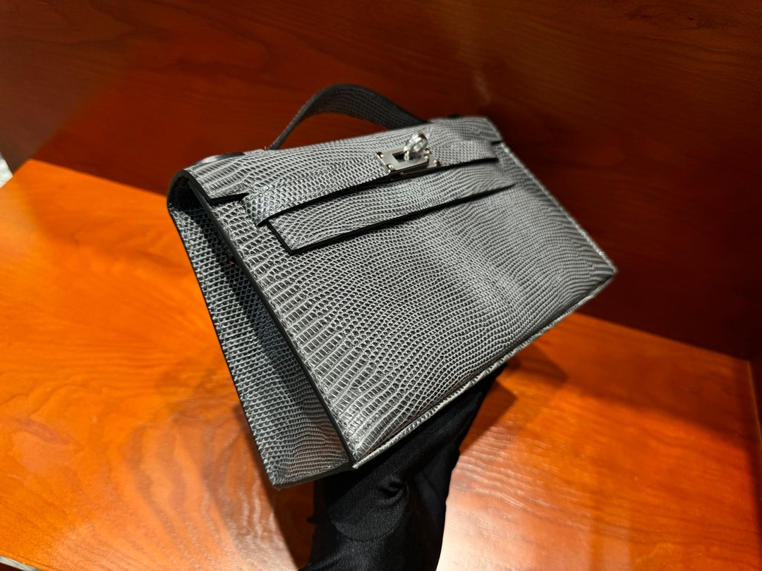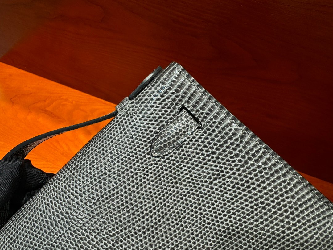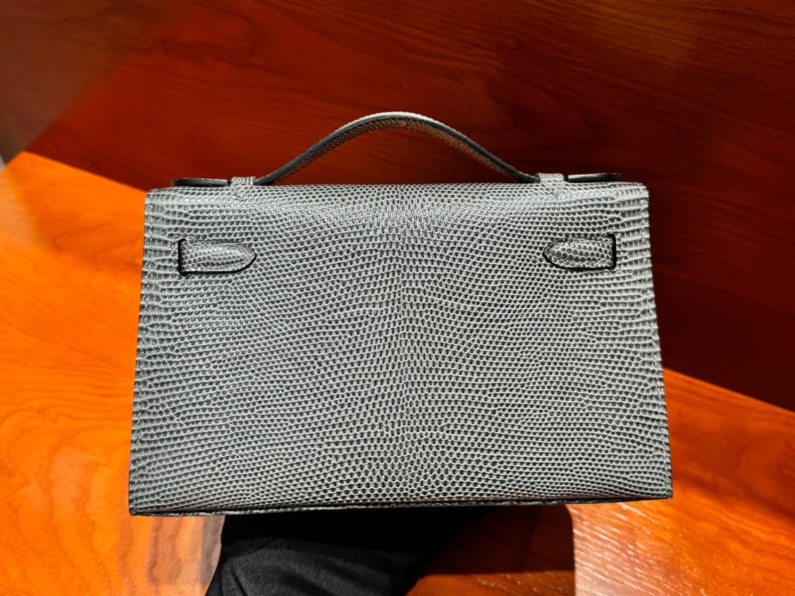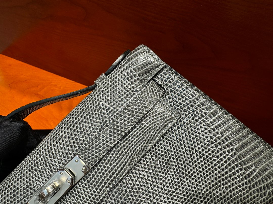 H Mini Kelly 22cm Lizard leather Handmade Pewter Grey