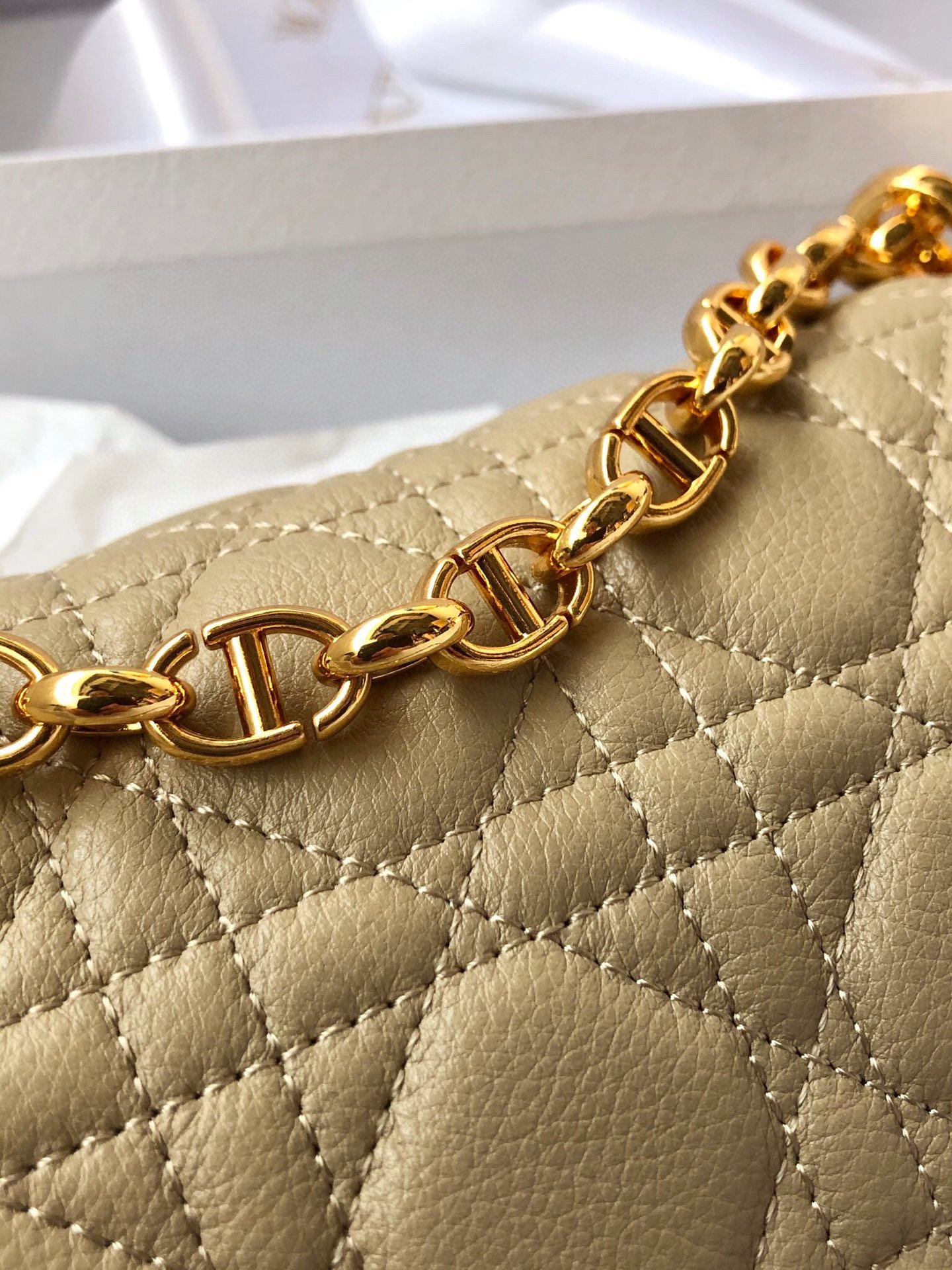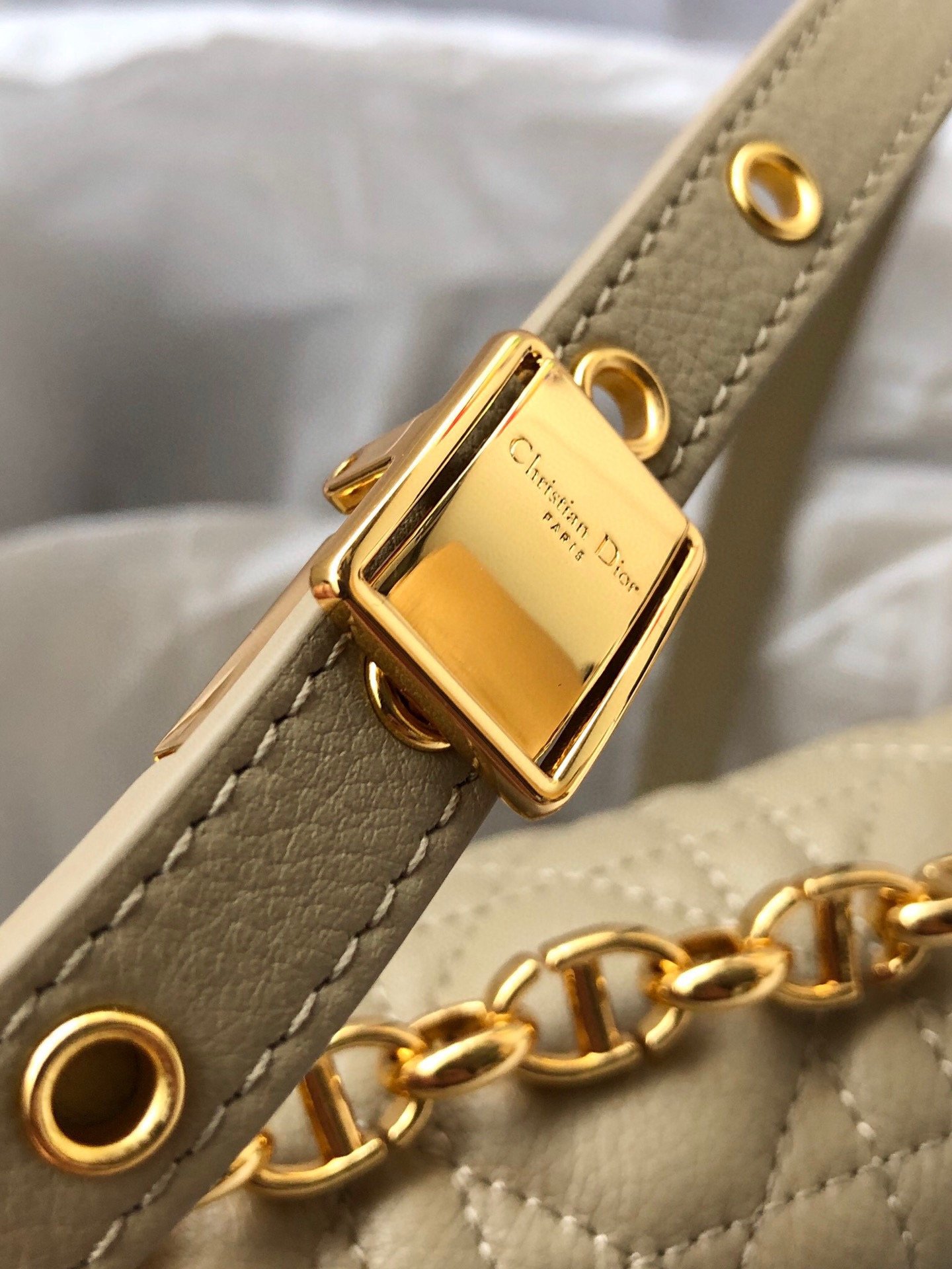 Removable and adjustable "CD" chain shoulder strap with military-style "Christian Dior" buckle