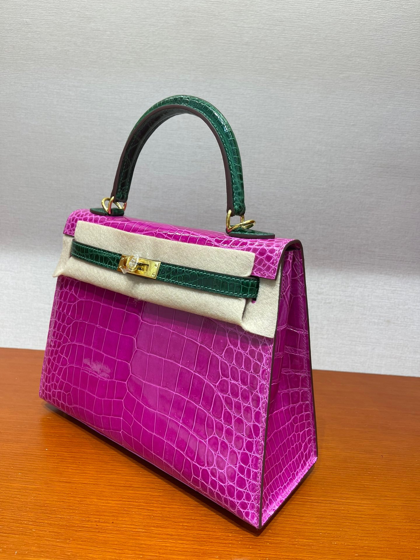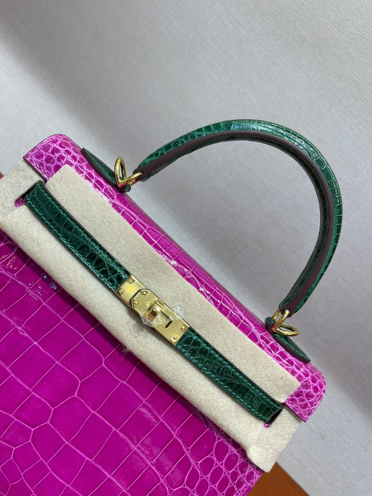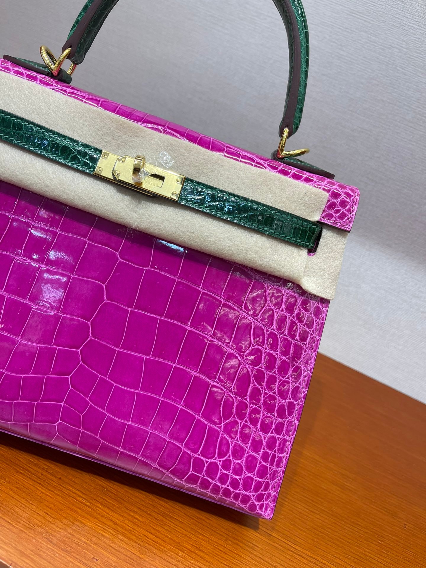 kelly 25 high-gloss crocodile leather Arabian Nights purple/emerald~gold Top craftsmanship hand-sewn wax thread sheepskin lining