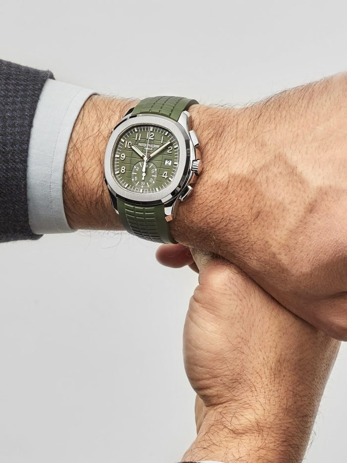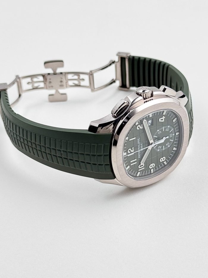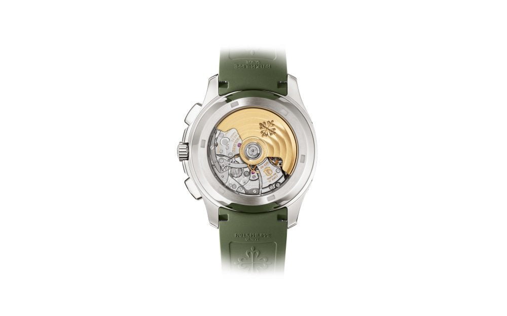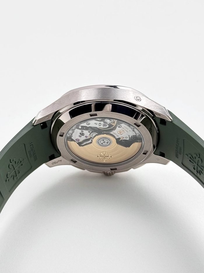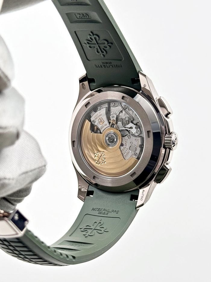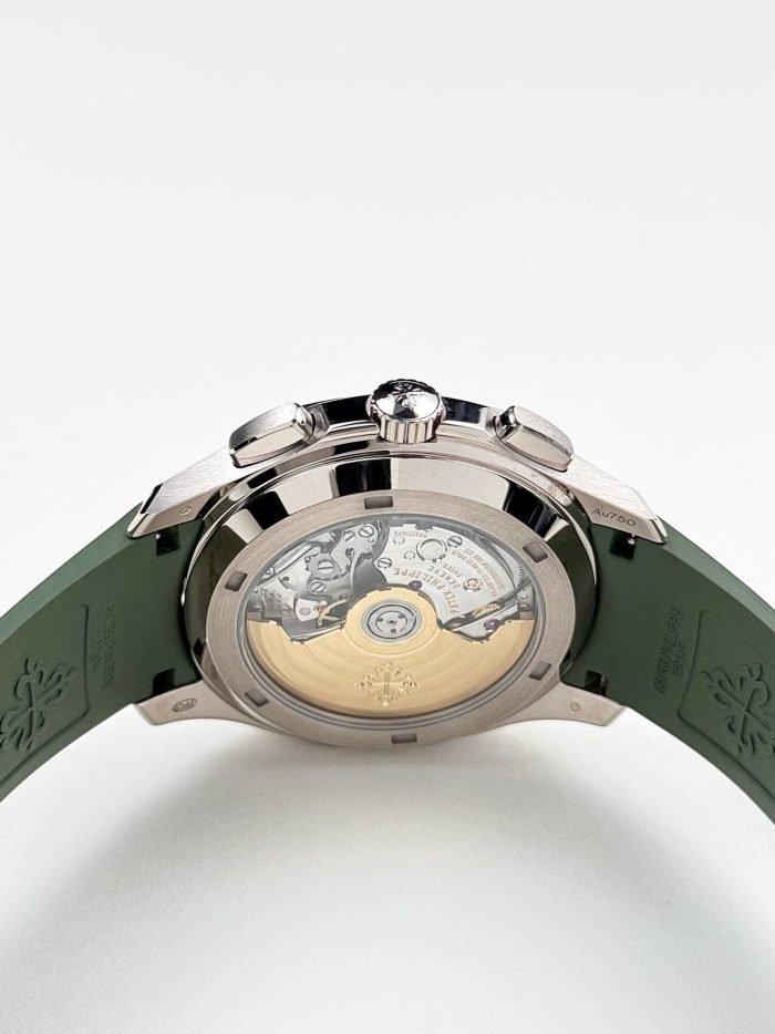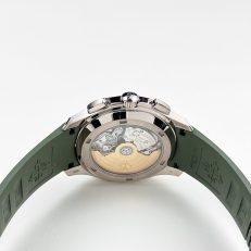 ??Basic information ??No.: 5968G-010 ??Movement type: automatic ??Gender: men ??Movement diameter: 30 mm ??Movement thickness: 6.63 mm ??Number of jewels: 35 ??Number of parts: 327 ??Power reserve: 55 hours ??Appearance ??Watch diameter: 42.2 mm ??Case thickness: 11.9 mm ??Dial color: khaki green ??Dial shape: square ??Strap color: khaki green ??Clasp type: folding clasp ??Bottom: transparent back ??Weight: None ??Waterproof performance: daily waterproof ??Time scale type: Arabic numerals luminous ??Clasp spacing: None ??Lug spacing: 22 mm ??Material ??Case material: 18k white gold ??Dial material: blue-black gradient effect. with khaki green lacquered dial. embellished? ? ? ?withfloating Carved decoration ???Bezel material: 18k white gold ??Mirror material: sapphire crystal glass ??Crown material: screw-in crown ??Strap material: composite waterproof material ??Buckle material: 18k white gold