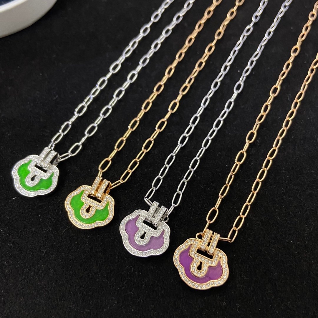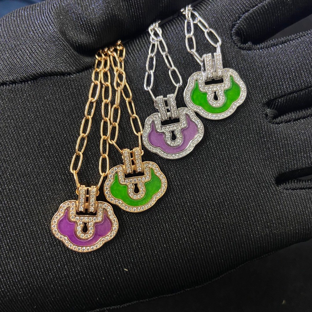 Kirin Necklace New Arrival Diamond Chalcedony Ruyi Lock Necklace Code: CIL15042372 Chrysoprase Violet White Gold Champagne Gold