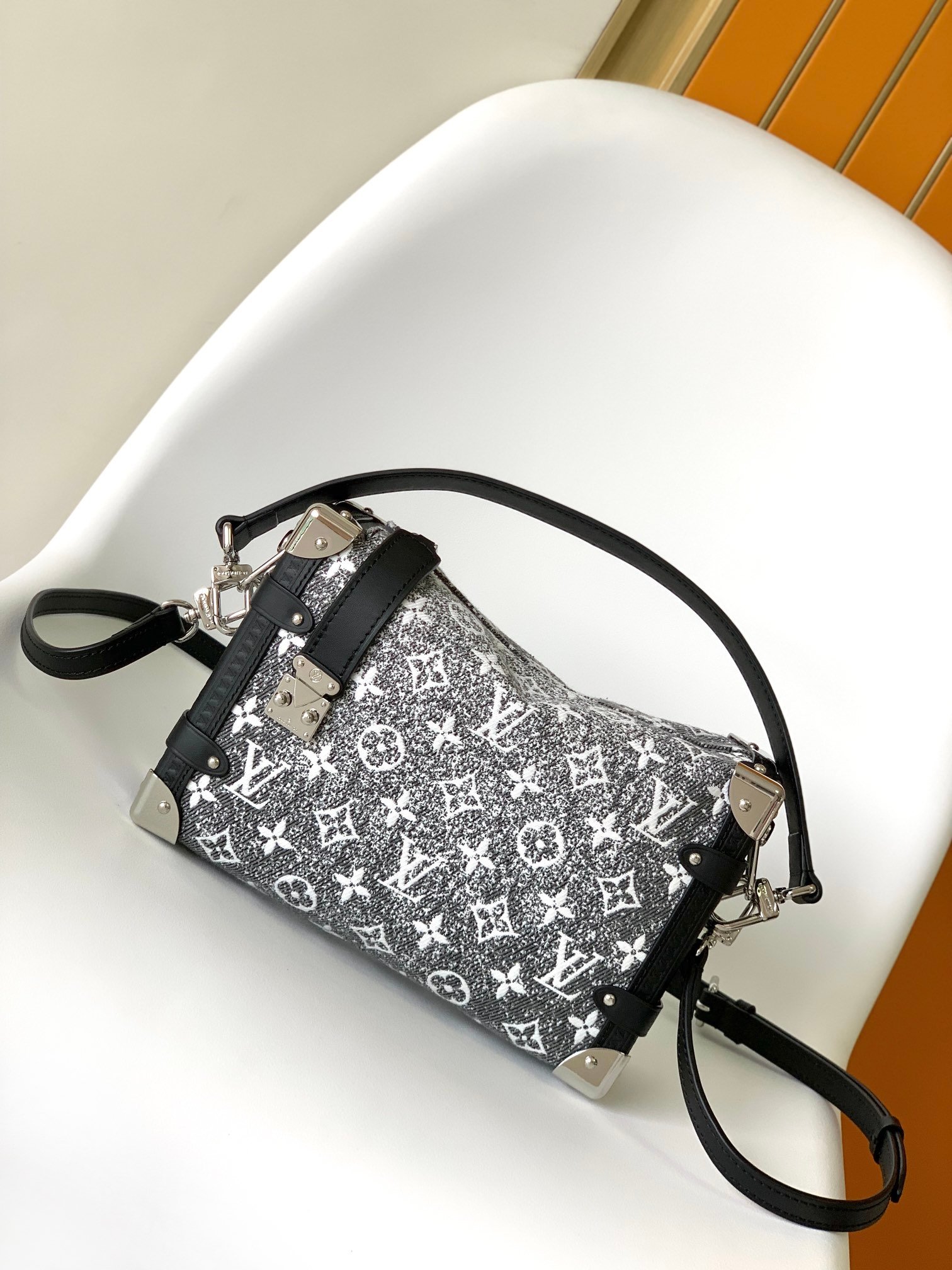 Top-grade original M46358 yellow leather with old flower M21460 black denim M22944 blue denim M22842 pink denim 2023 early spring series Cruise series, the same style as Gu Ailing’s show. Gu Ailing really ignited the show with this bag. The bold design concept of combining softness and hardness is inspired by the brand’s suitcases, but the leather is extremely soft. The bag is decorated with curved corners, right angles and traditional suitcase elements, achieving a perfect fusion of leather and metal, softness and hardness. Size: 21x14x6cm