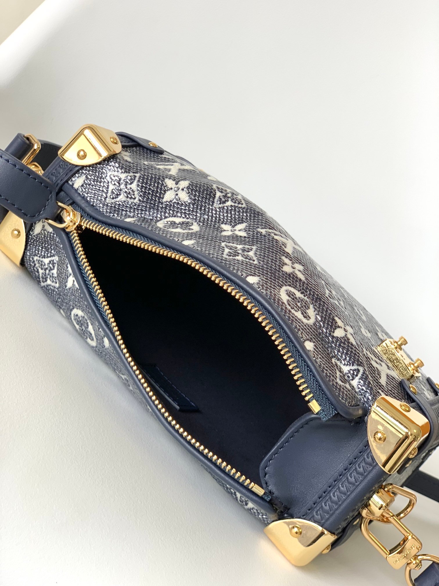Top-grade original M46358 yellow leather with old flower M21460 black denim M22944 blue denim M22842 pink denim 2023 early spring series Cruise series, the same style as Gu Ailing’s show. Gu Ailing really ignited the show with this bag. The bold design concept of combining softness and hardness is inspired by the brand’s suitcases, but the leather is extremely soft. The bag is decorated with curved corners, right angles and traditional suitcase elements, achieving a perfect fusion of leather and metal, softness and hardness. Size: 21x14x6cm