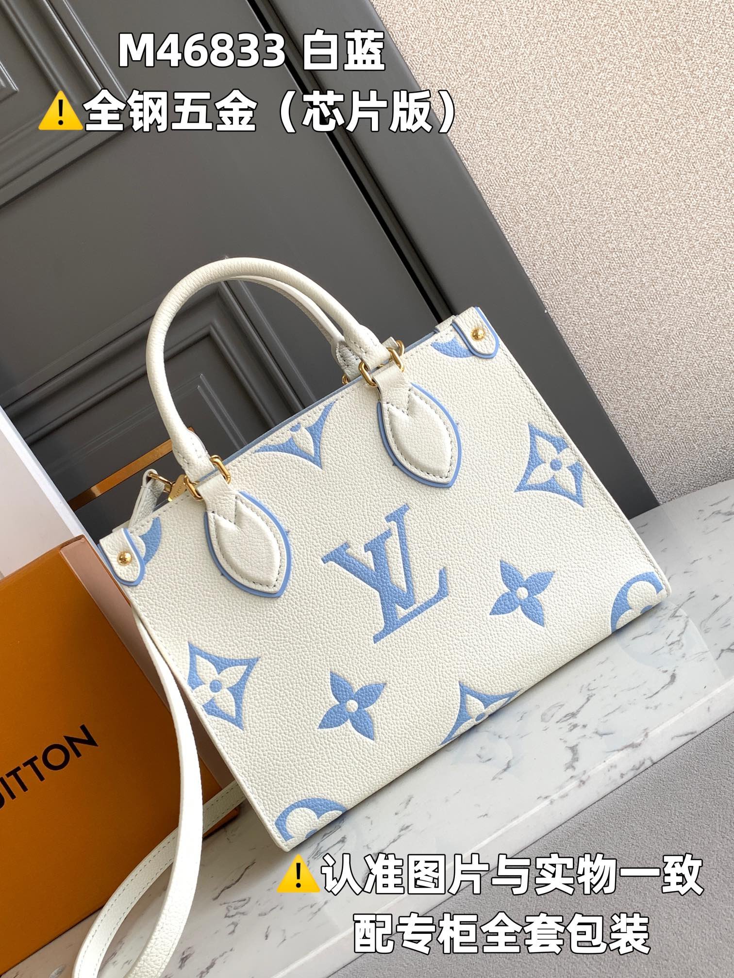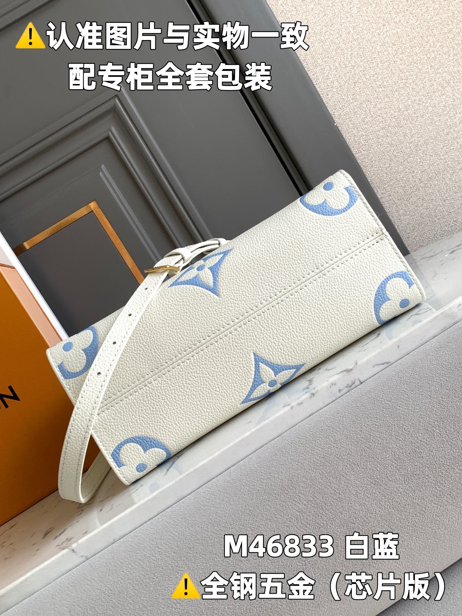 [Super original factory] M46833 white and blue printed (chip version) leather is Italian A-grade leather, which is in terms of quality, hardware, fabric, handwork, oil edge, A-grade product, the picture is consistent with the product, and comes with a full set of packaging. Size: 25x19x11.5CM