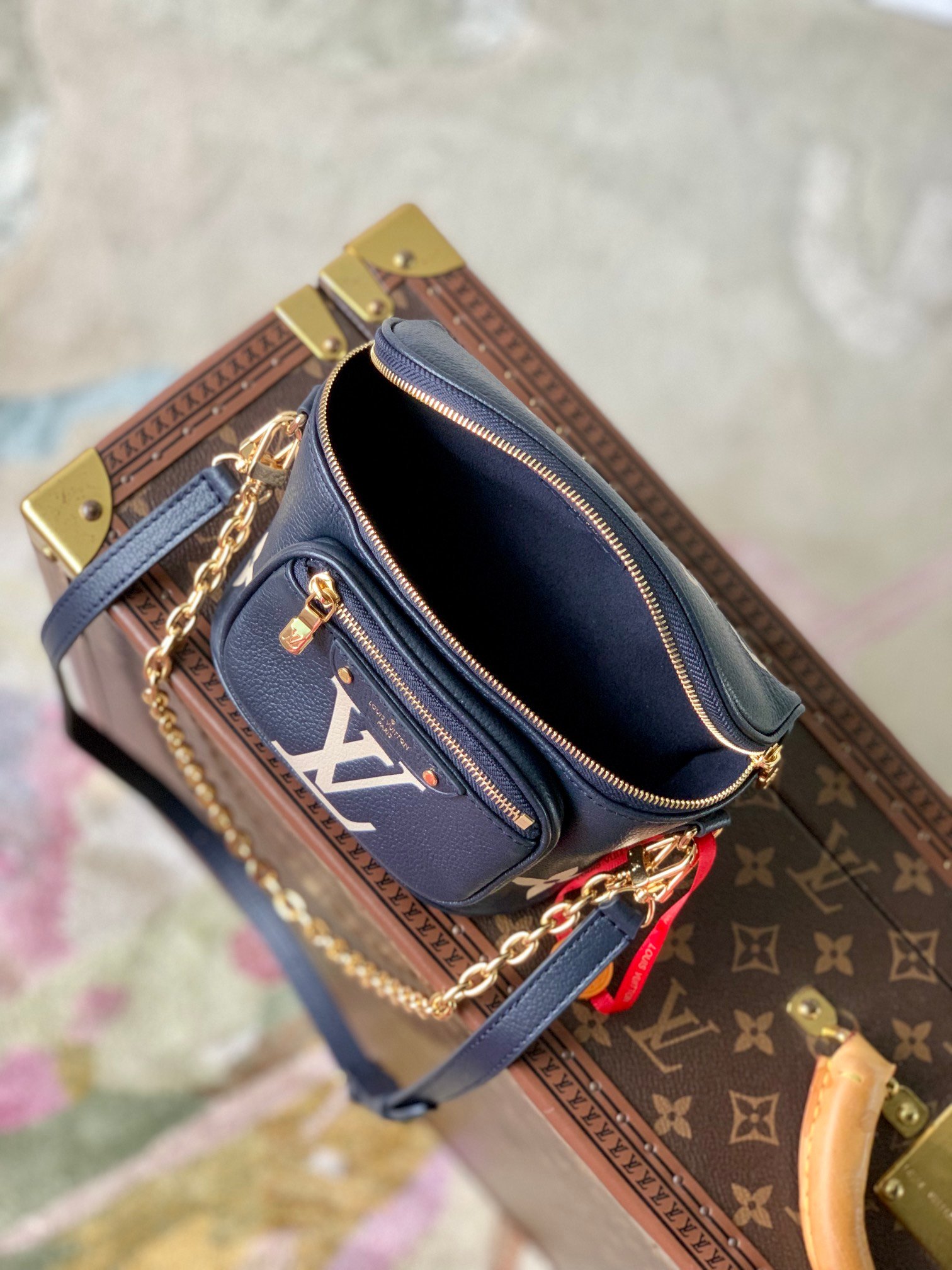 This Mini Bumbag is made of Monogram Empreinte leather, showing Louis Vuitton’s soft interpretation of the trendy waist bag design, with a zippered main compartment and zippered pocket, embellished with an embossed leather label. The iconic leather is cut into a detachable and adjustable shoulder strap, and the detachable chain adds functionality while being decorative. 17 x 12 x 9.5 cm (length x height x width)