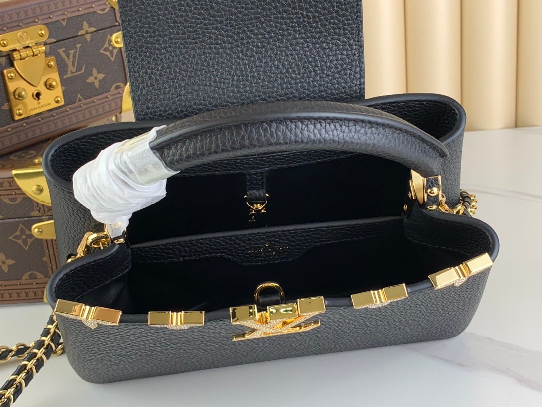 Top original replica exclusive real shot [Capucines Nano handbag] M48865 M24583 Black (Floral)