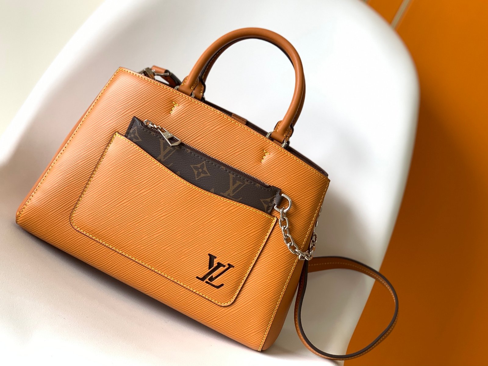 Top-grade original single exclusive real shot M59953 caramel brown M20520 white M59950 blue M59954 black The medium-sized Marelle Tote handbag uses Epi grain leather to outline the smooth lines, continuing the iconic elements such as the detachable Monogram pocket, hollow LV logo and Toron handle, providing a flexible choice for urban life. The detachable shoulder strap frees your hands and can be easily carried cross-body. Size: 30.0 x 21.0 x 13.0 cm (length x height x width) 202265
