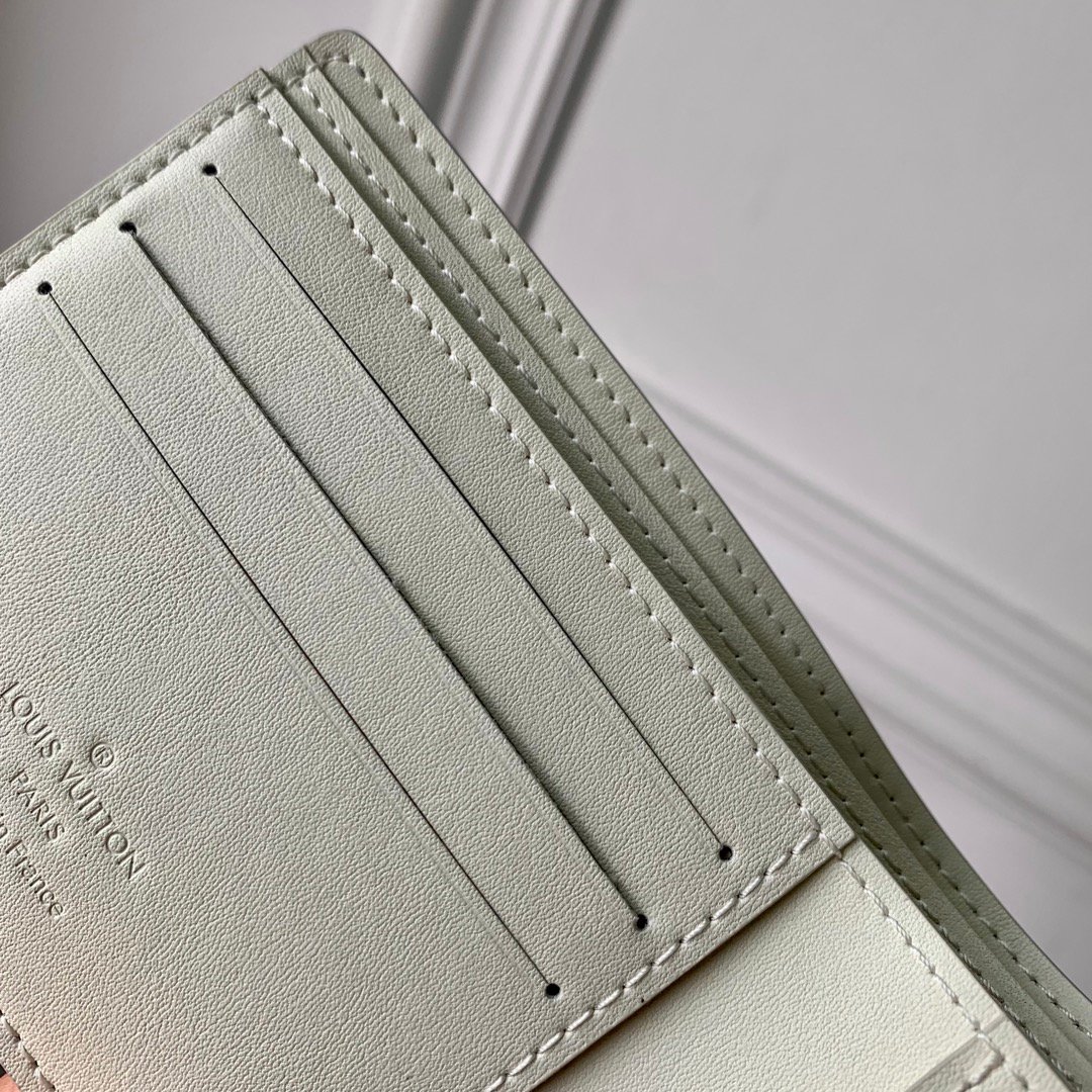 This Multiple wallet is made of smooth cowhide leather, and reproduces the Monogram pattern drawn by Georges Vuitton in 1989 by printing and embossing techniques, showing a strong retro atmosphere. Size: 11.5x9x1.5cm.