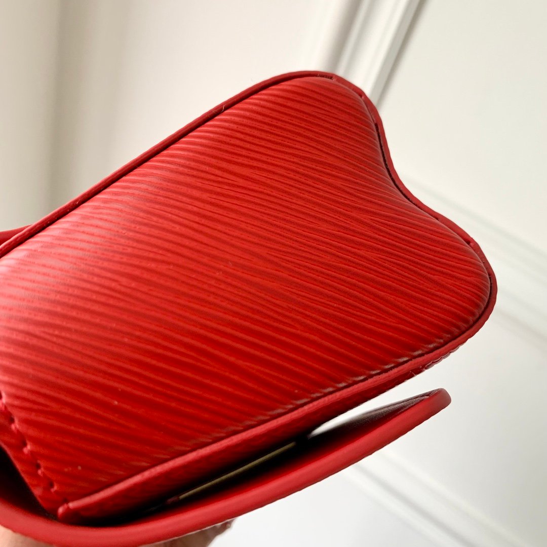 The Twist West Pochette bag in grainy Epi leather is an elegant accessory that allows you to carry your essentials for day or evening. This versatile reinterpretation of the iconic Twist model features a baguette-like horizontal design combined with an adjustable shoulder strap and a removable chain. It is finished with the iconic LV Twist closure on the flap.