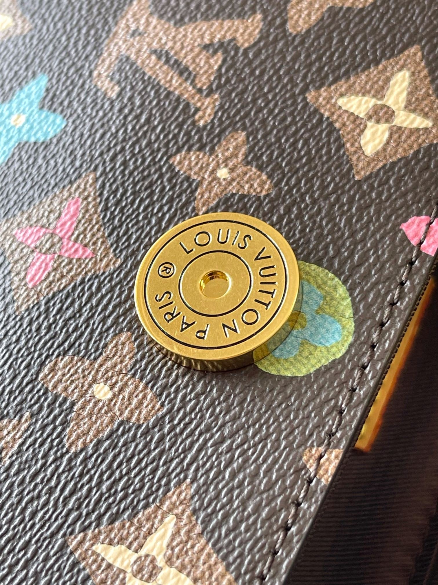 This Nano Steamer artist gives the Monogram pattern a hand-painted look, and cowhide leather is used to shape and reinforce the corners, shoulder straps and flap.
