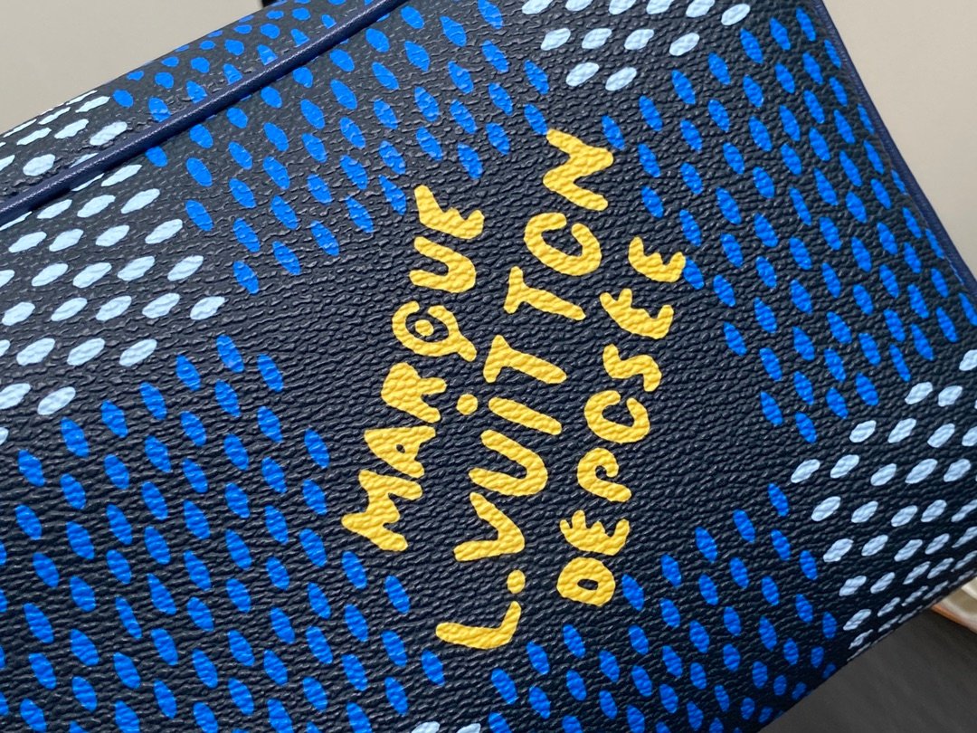 Top original N40747 blue toiletry bag series new season LOCKER DOPP KIT toiletry bag This Locker Dopp Kit toiletry bag uses Damier Heritage canvas created by Pharrell Williams Ms., giving the iconic plaid a retro feel. The exquisite design fits the rhythm of the city, and the adjustable handle and washable lining add functional elements. 23 x 13 x 12 cm (length x height x width)