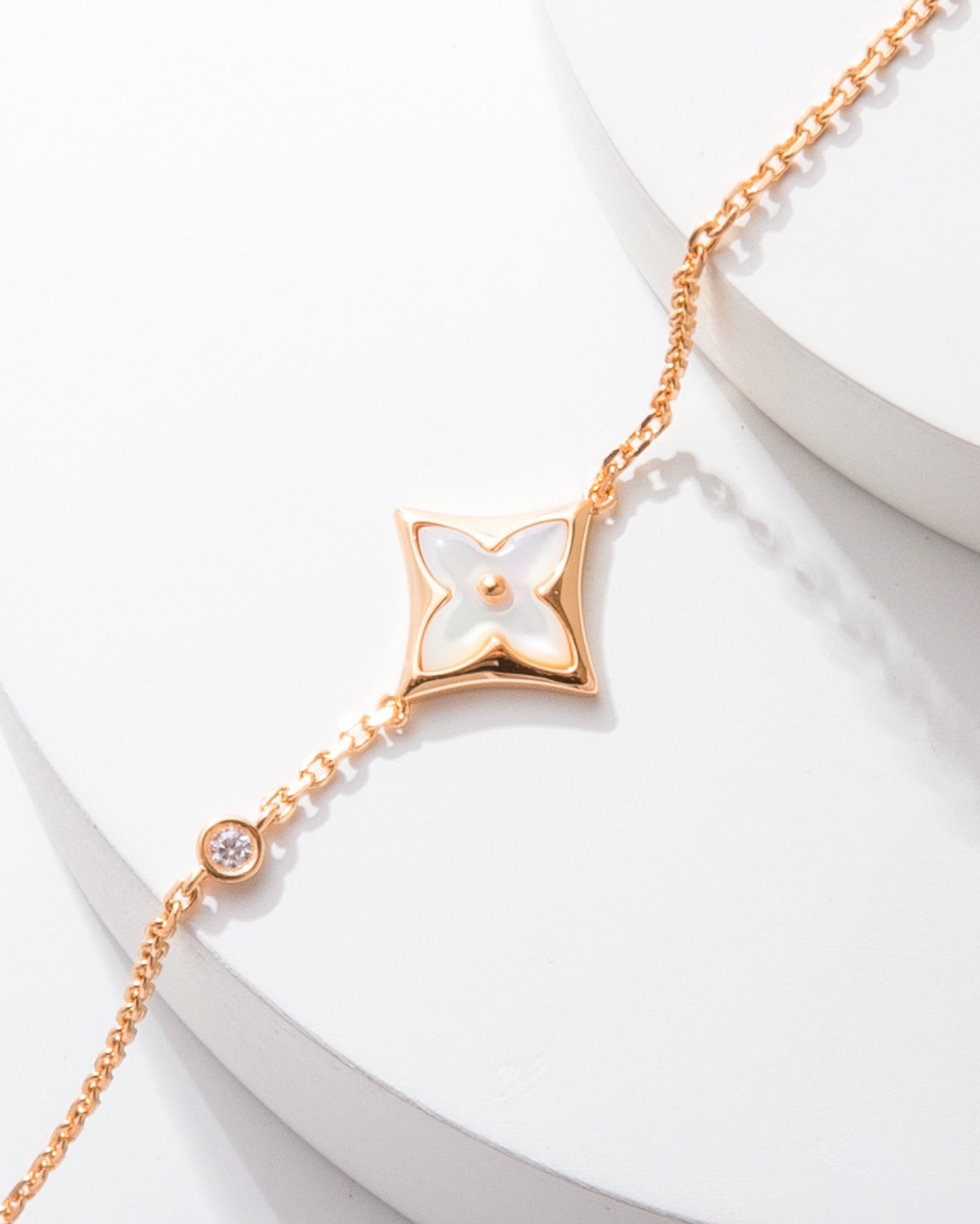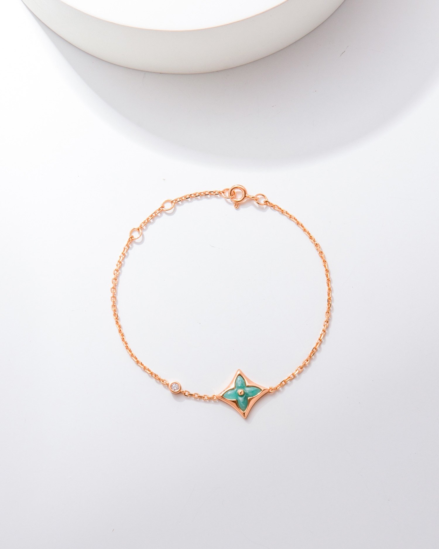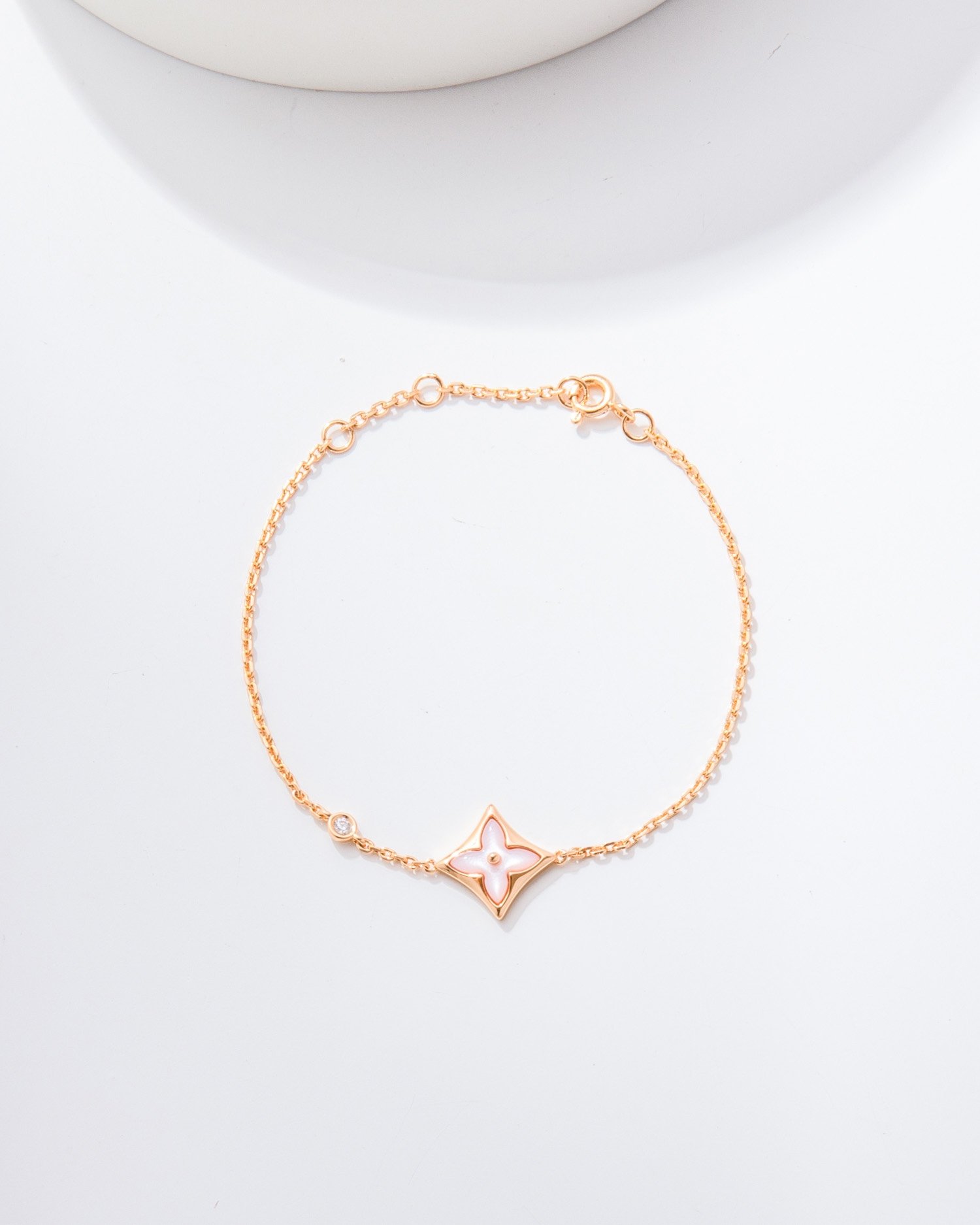 The iconic Monogram flower pattern is carved from natural mother-of-pearl, and the exquisitely inlaid natural stones and main diamonds complement each other. The bracelet size is suitable for size 14 to 17 and can be adjusted.