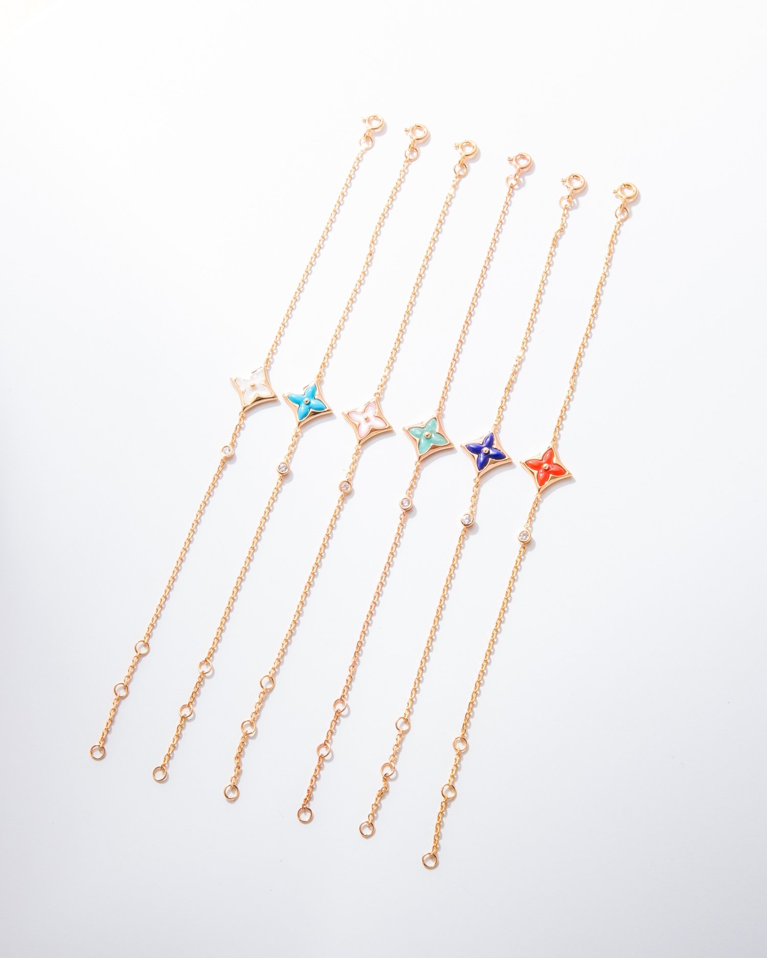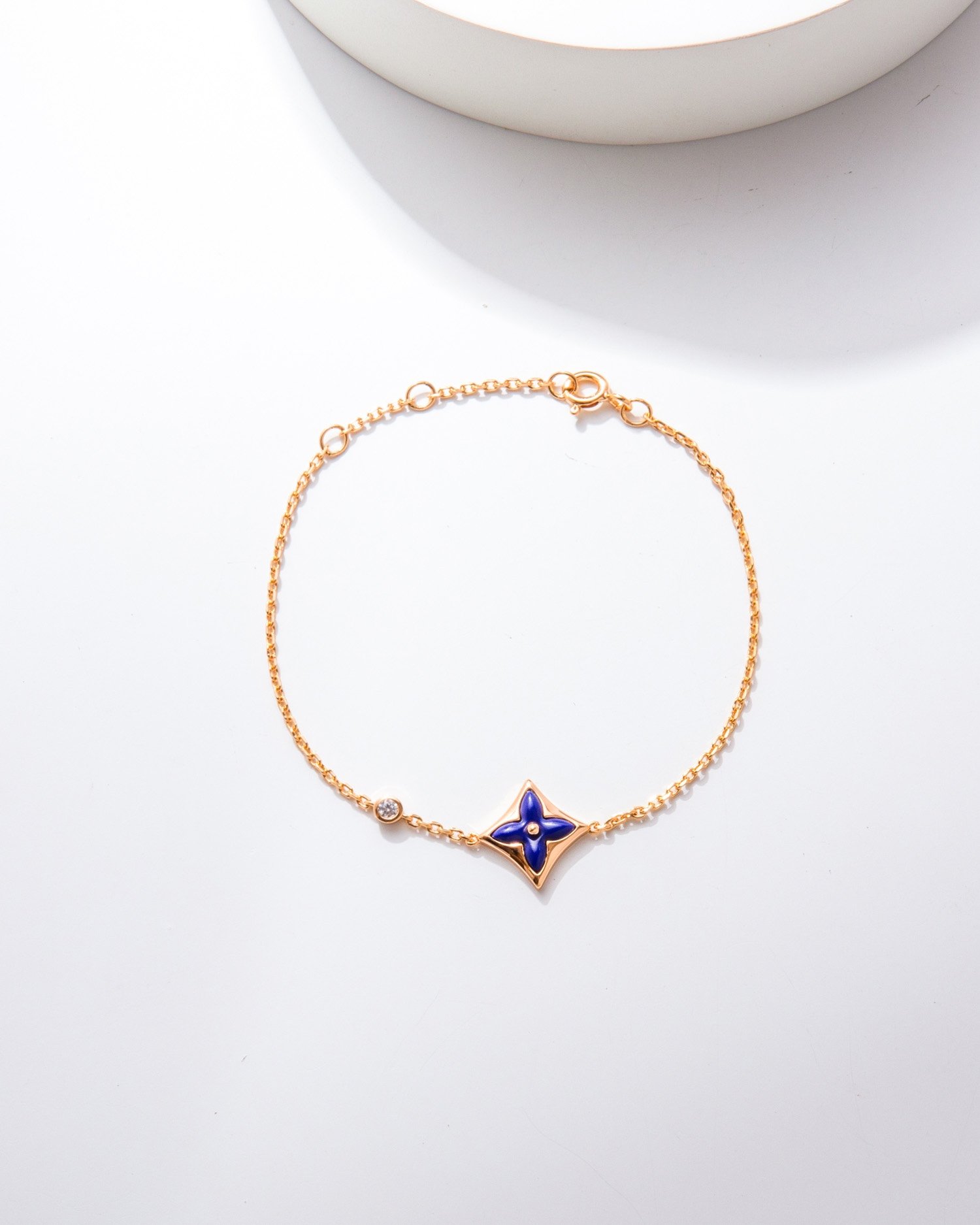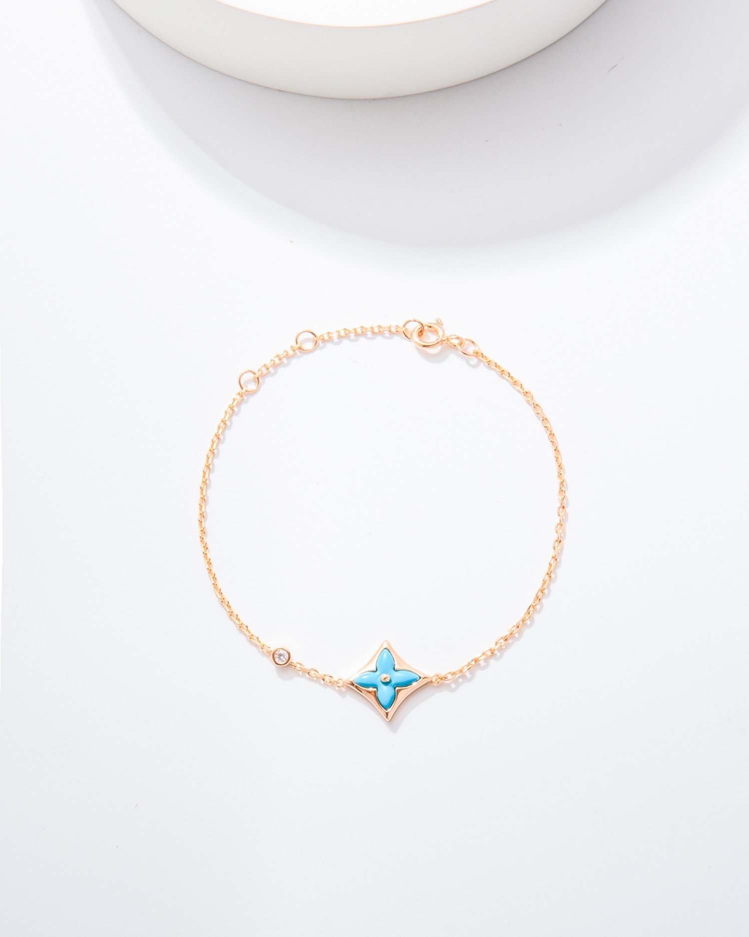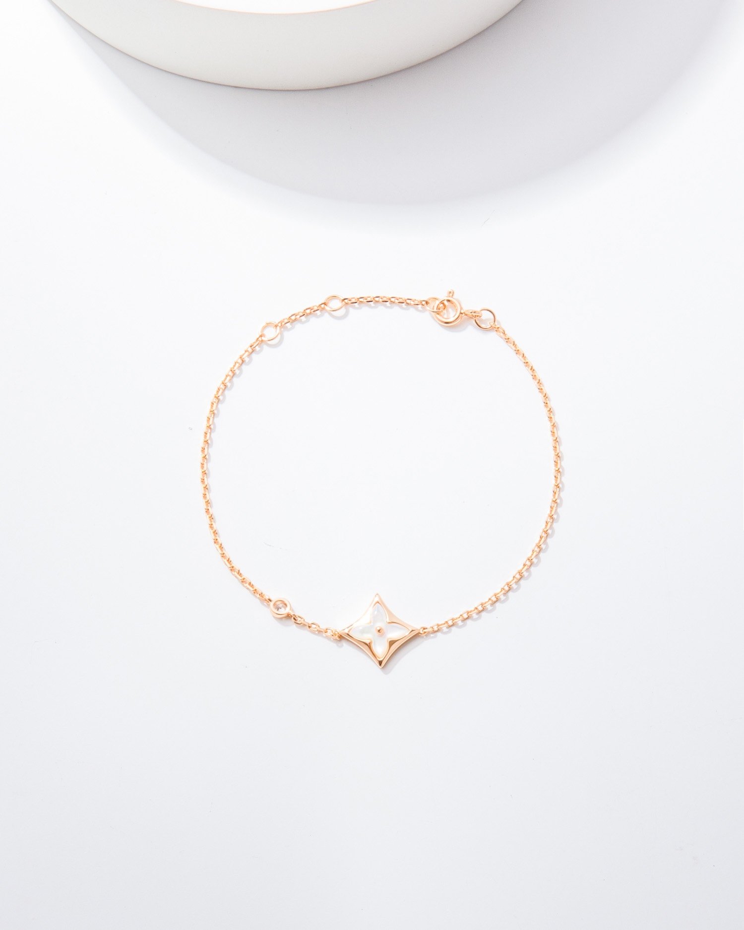The iconic Monogram flower pattern is carved from natural mother-of-pearl, and the exquisitely inlaid natural stones and main diamonds complement each other. The bracelet size is suitable for size 14 to 17 and can be adjusted.