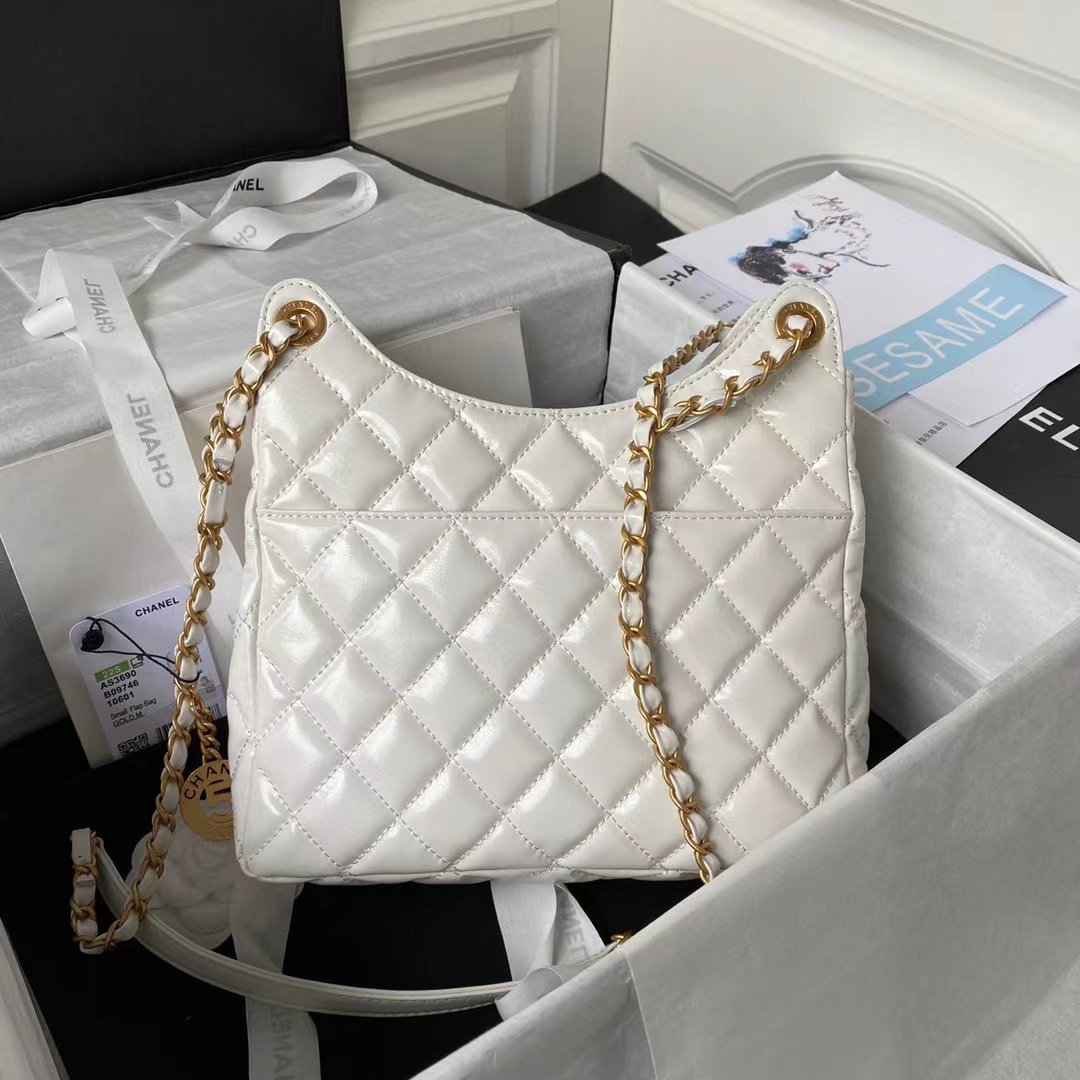Medium Chanel 23C model: AS3690 oil wax leather hobo The most concerned bag on the ceiling of the shoulder bag, the shiny oil wax leather, the small pocket and the small gold coin pendant on the chain all reflect little thoughts, retro Fashionable, the length of the shoulder strap is also very friendly to the small one, the upper body is amazing, the crossbody on one shoulder, the armpit is all sizes: 21.5×22.5×7cm