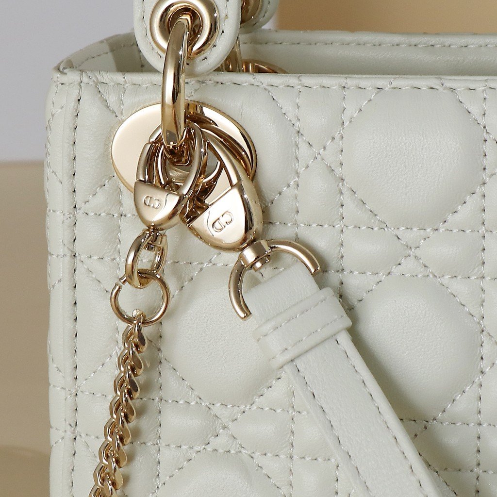 Lady Dior Bag Three-grid Lambskin White Gold Buckle