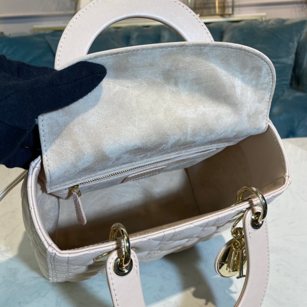 The Lady Dior handbag is a masterpiece of art that embodies the spirit of Dior’s haute couture. The lining is made of lambskin. This hand-crafted lambskin handbag is decorated with Dior’s classic Cannage stitching. It can be carried by hand or on the shoulder, showing a timeless and elegant style. Adjustable shoulder strap